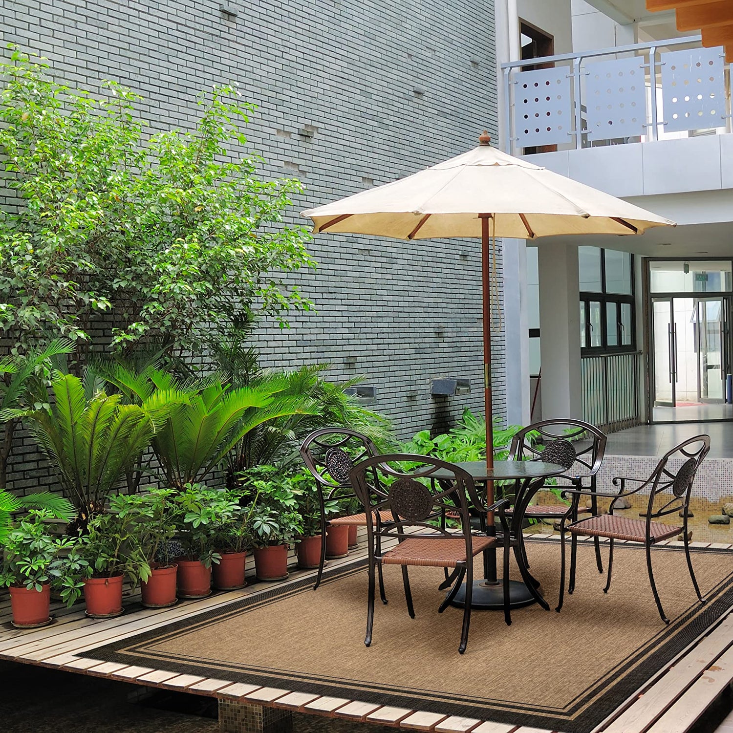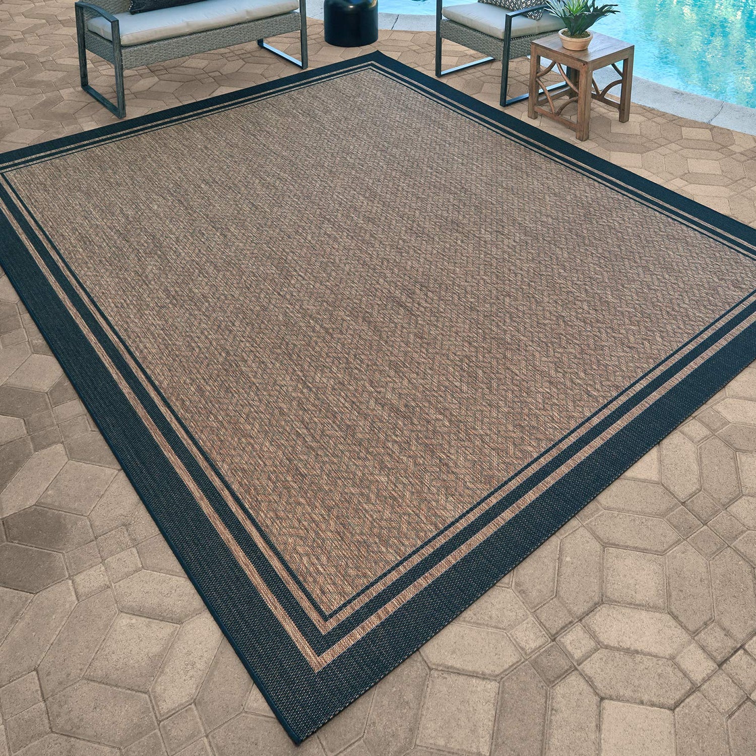 Gertmenian Indoor Outdoor Classic Flatweave Area Rug, Stain & UV Resistant Carpet, Deck, Patio, Poolside & Mudroom, 8x10 Ft Large, Border, Black Tan, 21515
