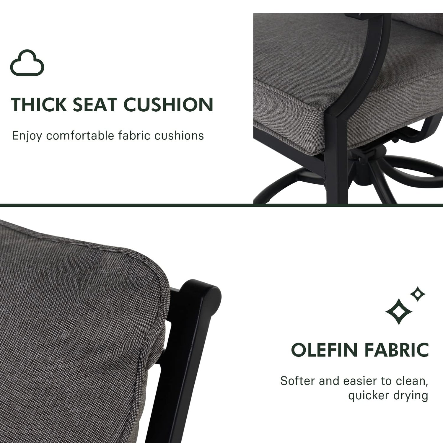 - Detachable High Elasticity Cushion:Made of high elasticity 2.7" cushion and sturdy olefin seat cover, this patio table set can provide better seating experience in different season. Patio dining furniture set with armrests and back cushions helps alleviate muscle tension and stress, providing an ideal setting for relaxation and comfort. It offers the perfect spot for guests to savor breakfast, outdoor brunch, or afternoon tea while ensuring your utmost relaxation.