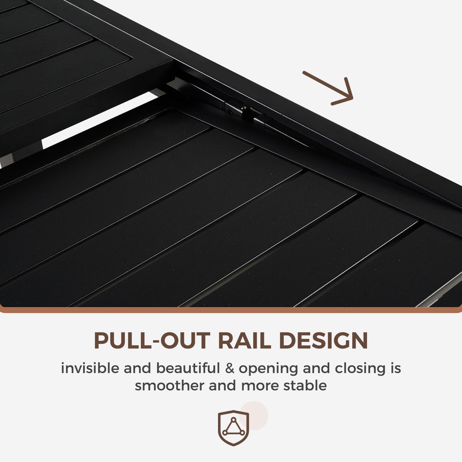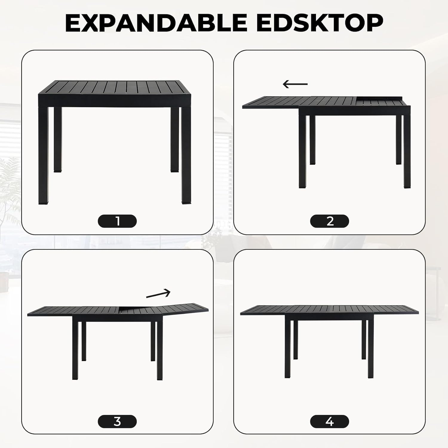 - Expandable Patio Table: Patio table adopts upper and lower double slide rails which ensures smooth and stable telescopic opening and closing, easy to operate. Also allows you to make it longer or shorter, providing ample space for 4-8 people. Whether it is a family gathering or a gathering of friends, it can easily accommodate everyone.