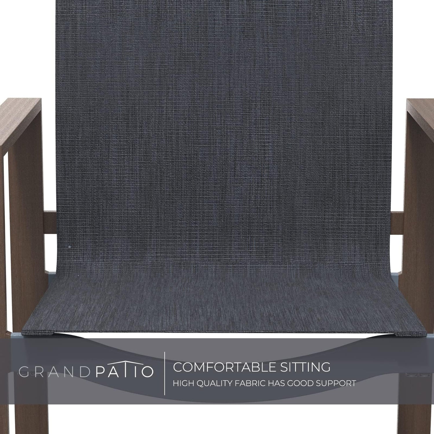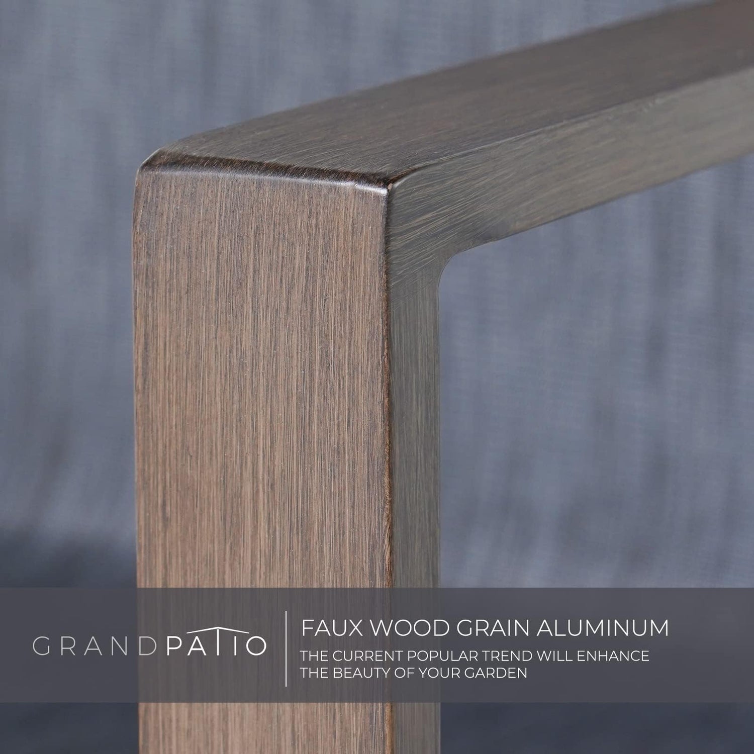 - WOOD GRAIN FINISH: The surfaces of the outdoor dining table top and chair support frames are meticulously hand-brushed by skilled craftsmen, creating a unique wood grain texture. The modern minimalist style, along with brown and deep gray sling fabric, adds an elegant touch to your dining environment while ensuring resistance to rust and durability against various outdoor conditions.