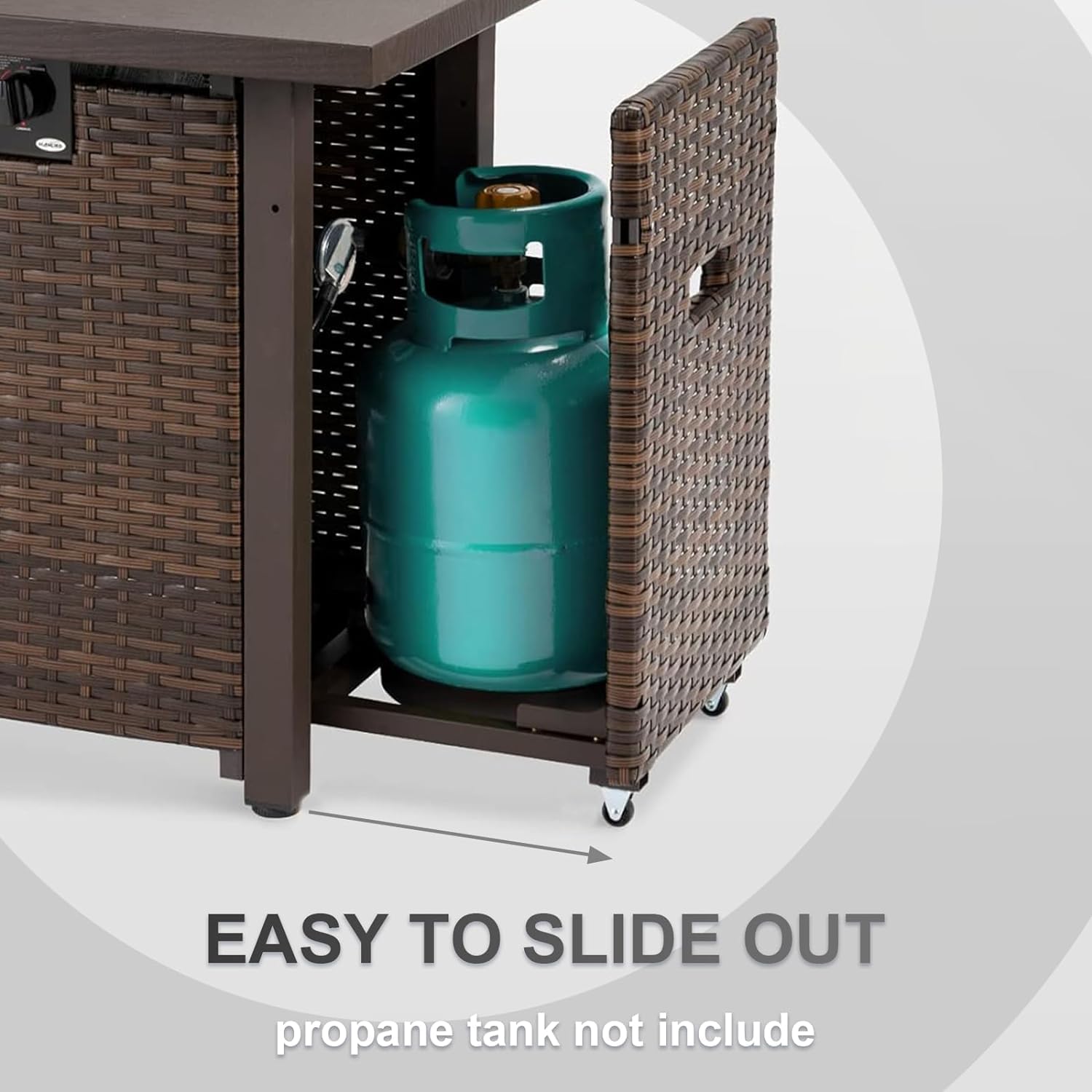• 【SAFE AND CONVENIENT FIRE PIT TABLE】gas fire pit table has passed the most dynamic safety certification in North America. It not only has an upgraded version of dual pipe burner to make combustion more uniform, but also has the highest safety standard of 55000 BTU stainless steel burner rated power to provide the most sufficient flame. Our fire pit table uses propane fuel, clean and pollution-free.