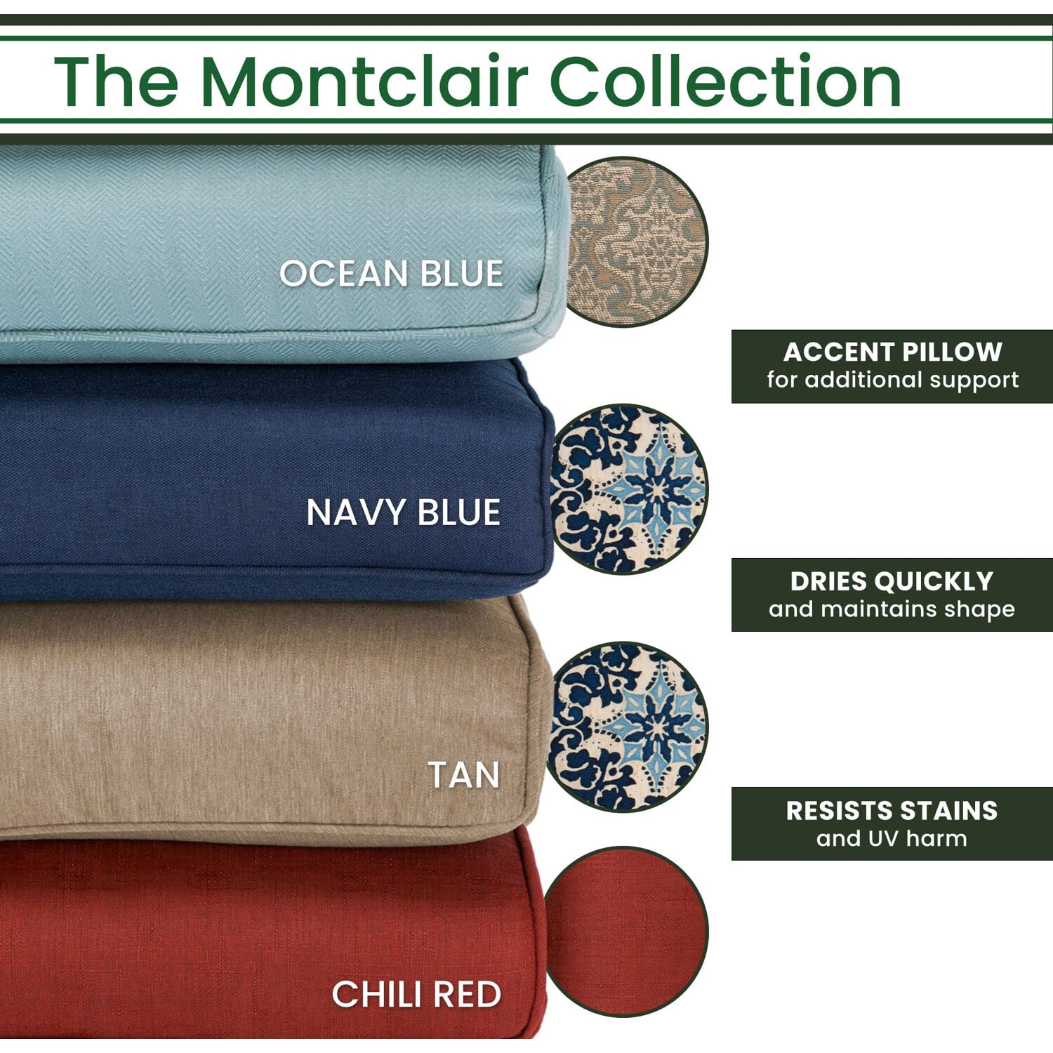 - Comfort & Quality: High quality outdoor fabric is soft to the touch, dries quickly, and resists fading