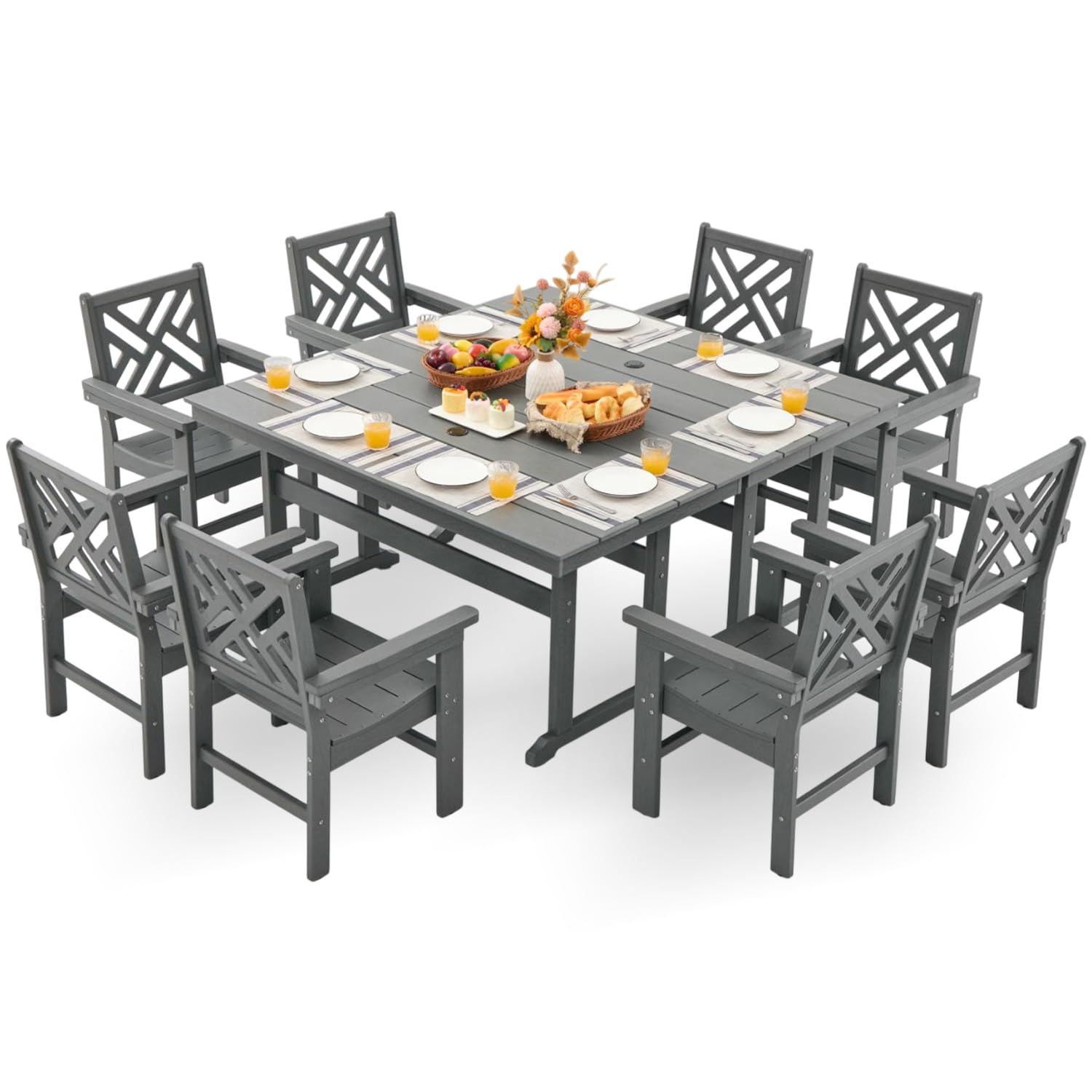 HDPE Outdoor Dining Set,10-Piece Outdoor Table and Chairs Include 8 Dining Chairs and 2 Pcs 62.5" Patio Dining Table with Umbrella Hole (Gray)