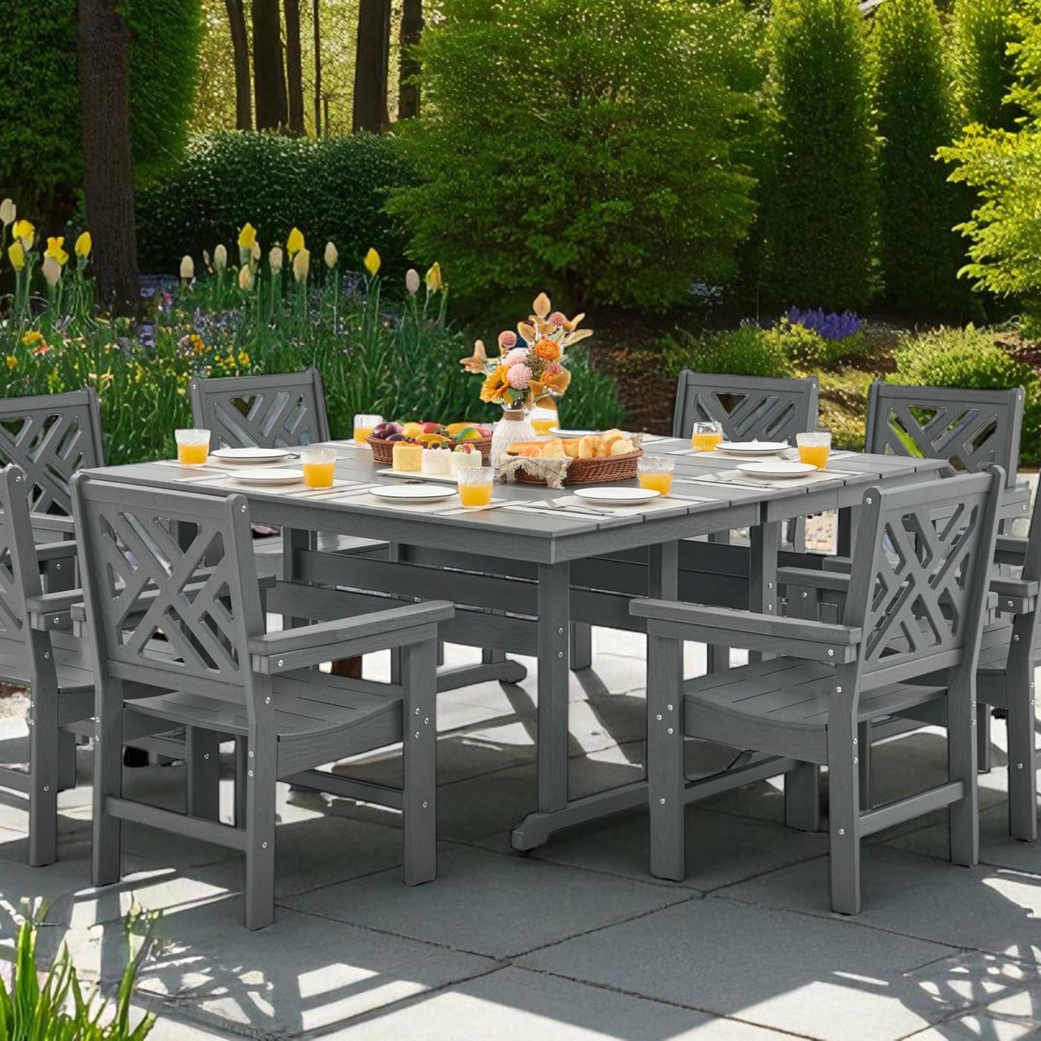 - Stylish & Durable Outdoor Dining Set: Elevate your outdoor space with this 10-piece HDPE Dining Table Set. Made from premium HDPE, it’s waterproof, rust-resistant, and built to last. The UV-resistant material keeps it looking new for years.
