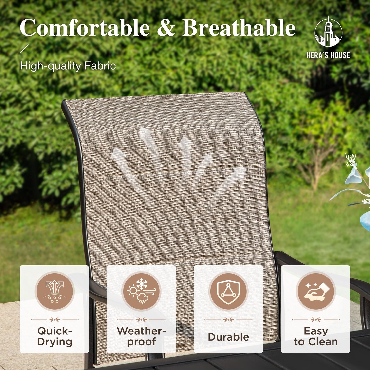• 【Upgrade Textilene Mesh Fabric】The seat and back is made of premium Textilene fabric which is more breathable, permeable,100% UV-protection and all weather resistant.