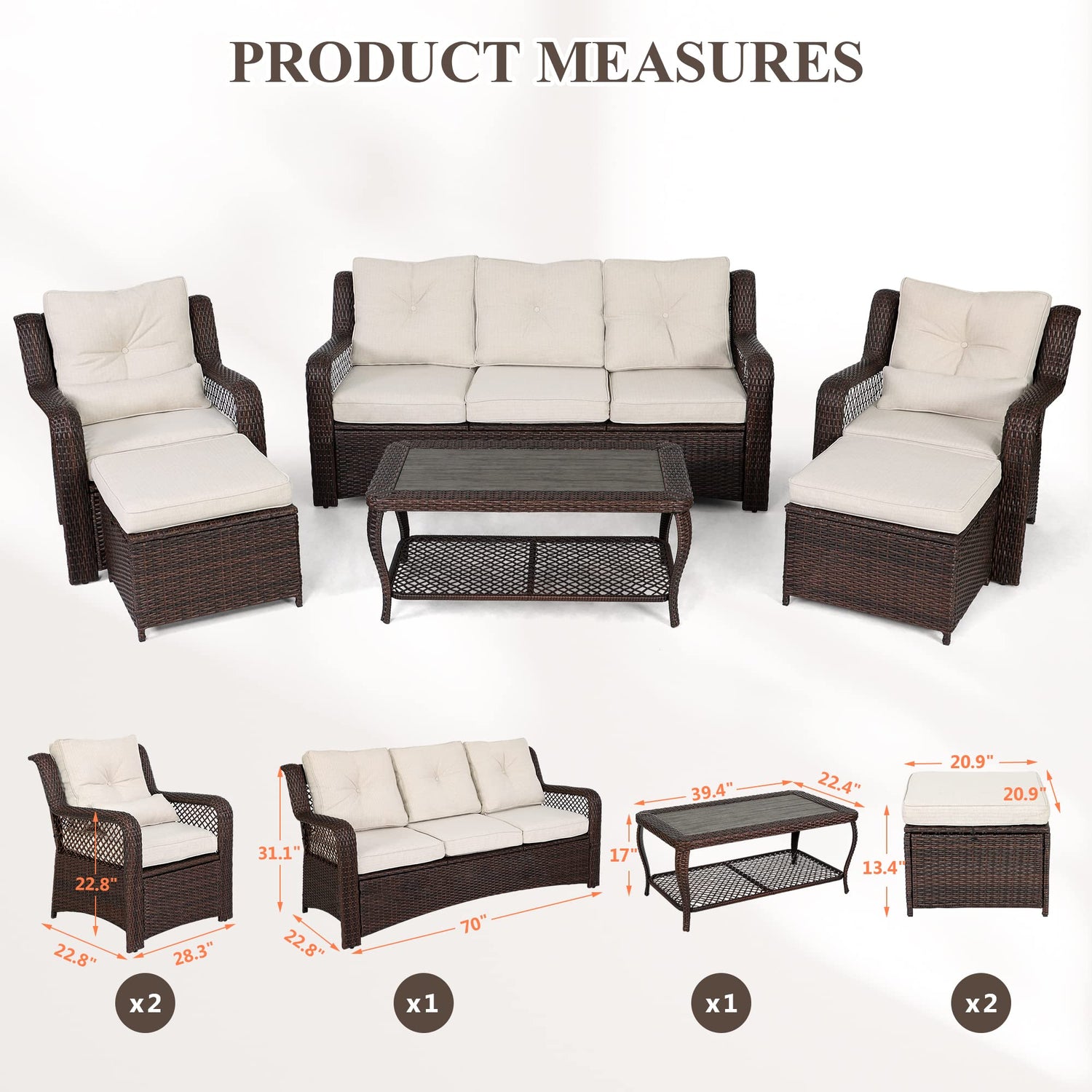 HOMREST 6 Pieces Patio Furniture Set, Wicker Patio Conversation Sets, Outdoor Sectional Rattan Sofa Chairs with Coffee Table, High Back, Ottoman, Cushions for Porch, Deck, Garden, Backyard (Beige)