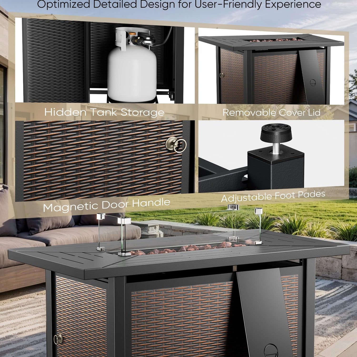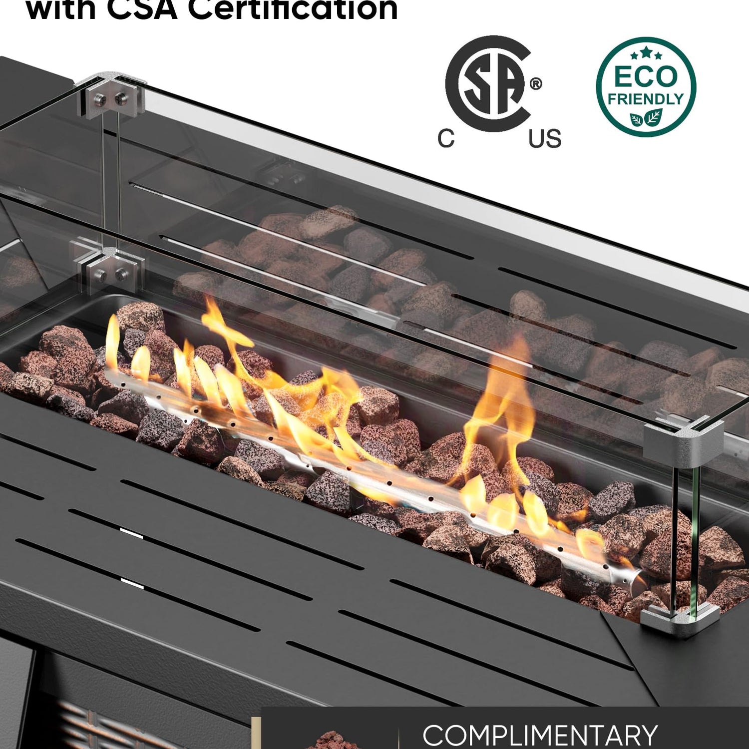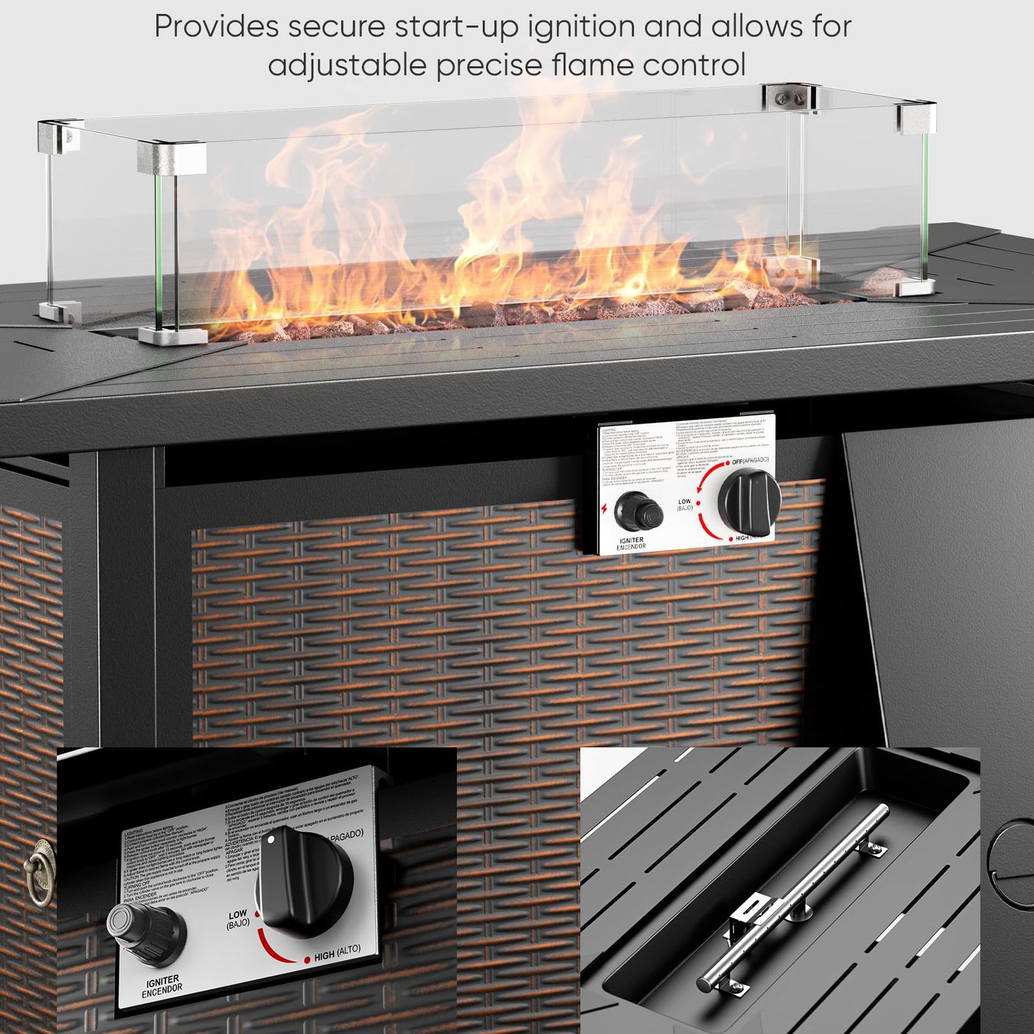 - Warm Bonfire and Auto-ignition Device:The gas fire pit table has a heat output of 50,000 BTUs and is equipped with an integrated electronic ignition that adjusts the flame to your desired temperature with the control button. Continuously provide you with enough warmth.