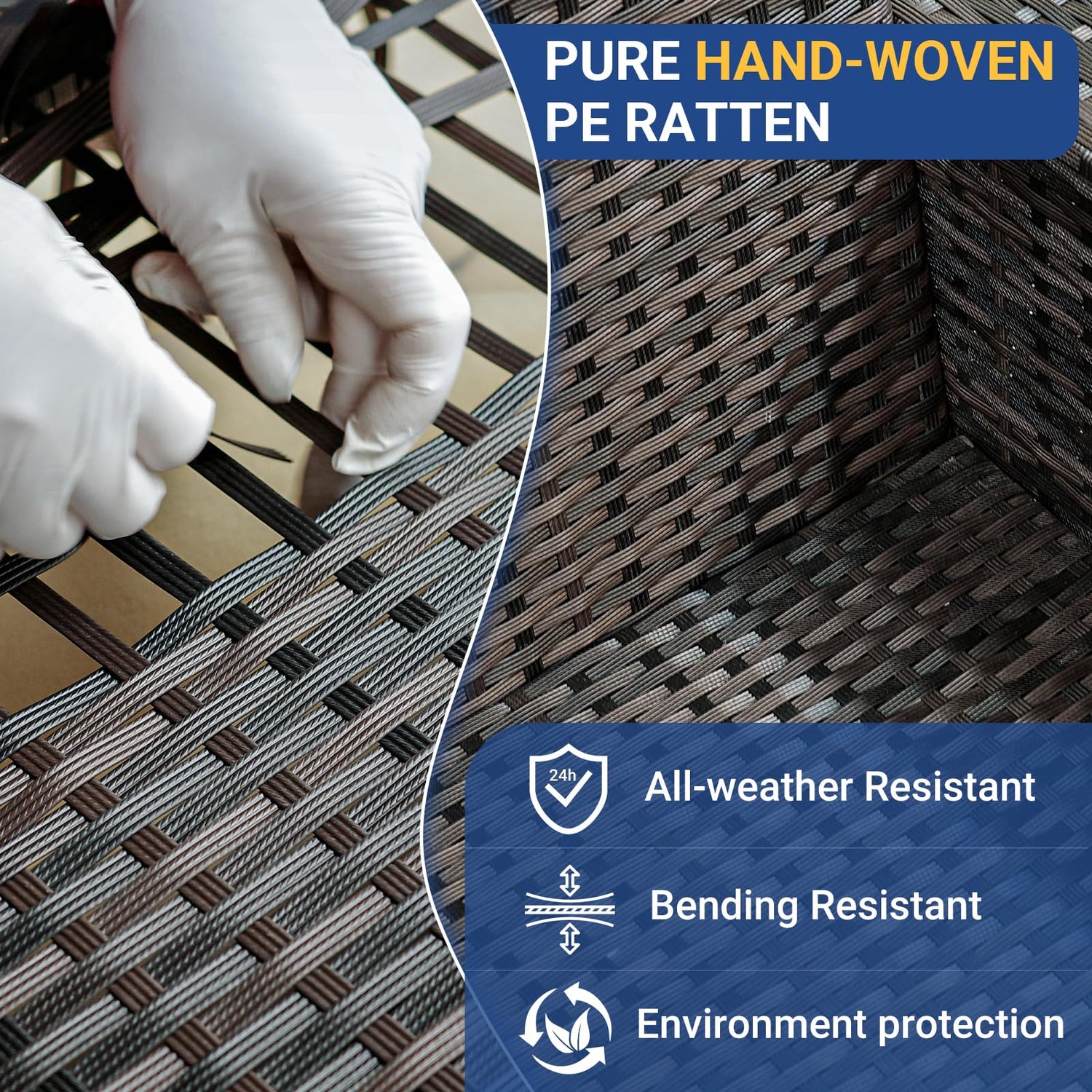 - ALL-WEATHER USING AND DURABLE:Patio furniture set is crafted with hand-woven brown PE rattan and reinforced by steel frame, this outdoor sectional is built to last.The powder-coated steel inside resists rust, fading, and peeling, make sure patio sofa durable enough to withstand rain and wind for long time using.