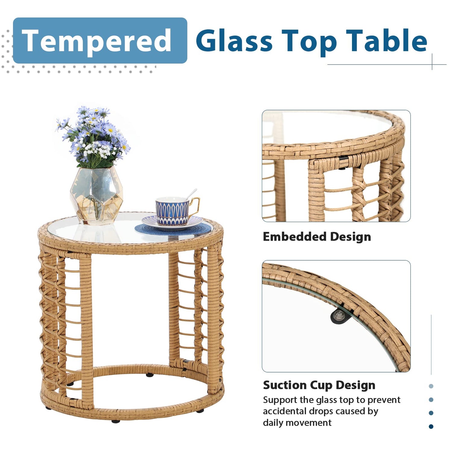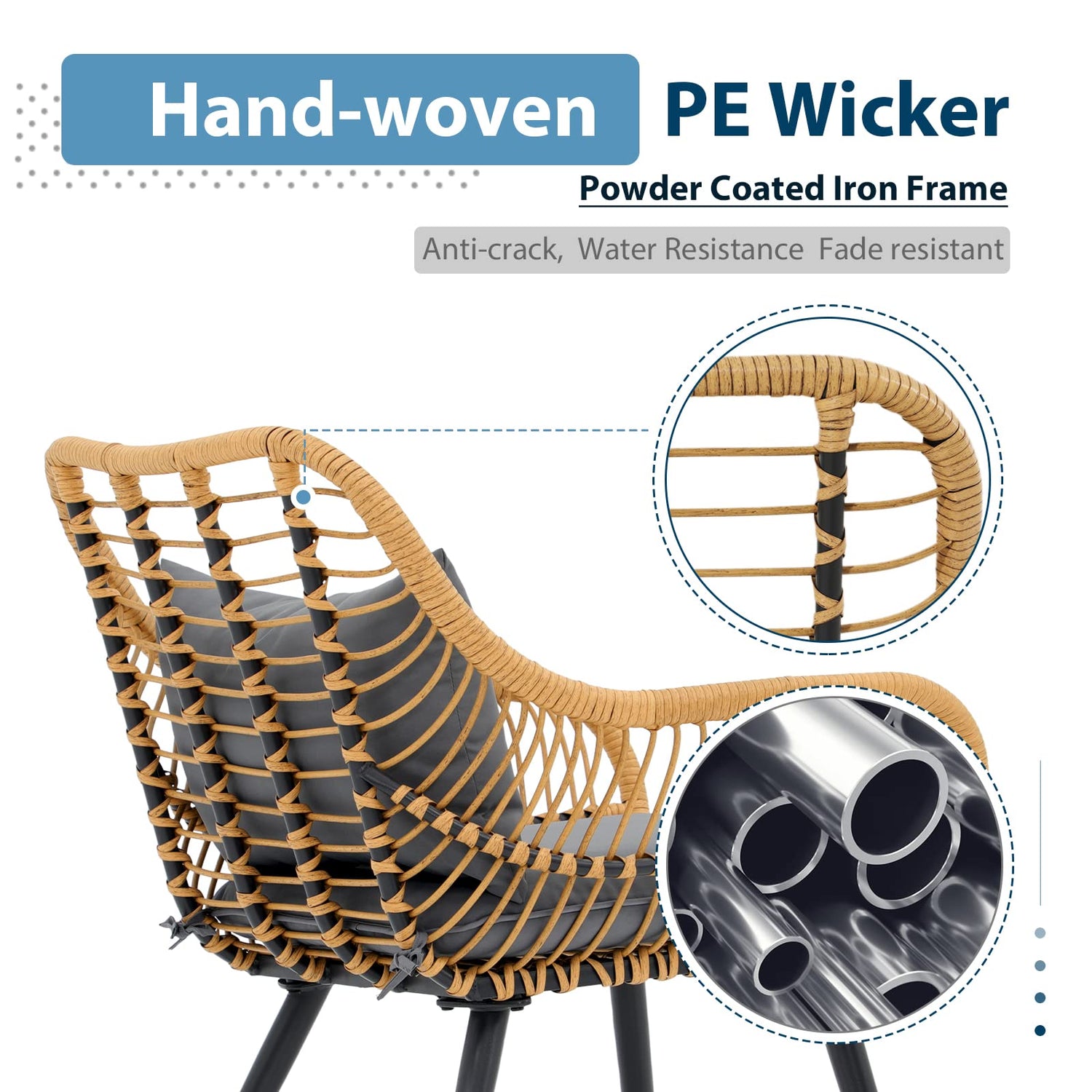 - Handcrafted Weaving - Meticulously handwoven with two shades of beige synthetic rattan and PE wicker, this patio conversation sets offer easy maintenance, fade resistance, and waterproof qualities, making small balcony furniture for apartments ideal for families and rental properties seeking long-lasting outdoor furniture sets.