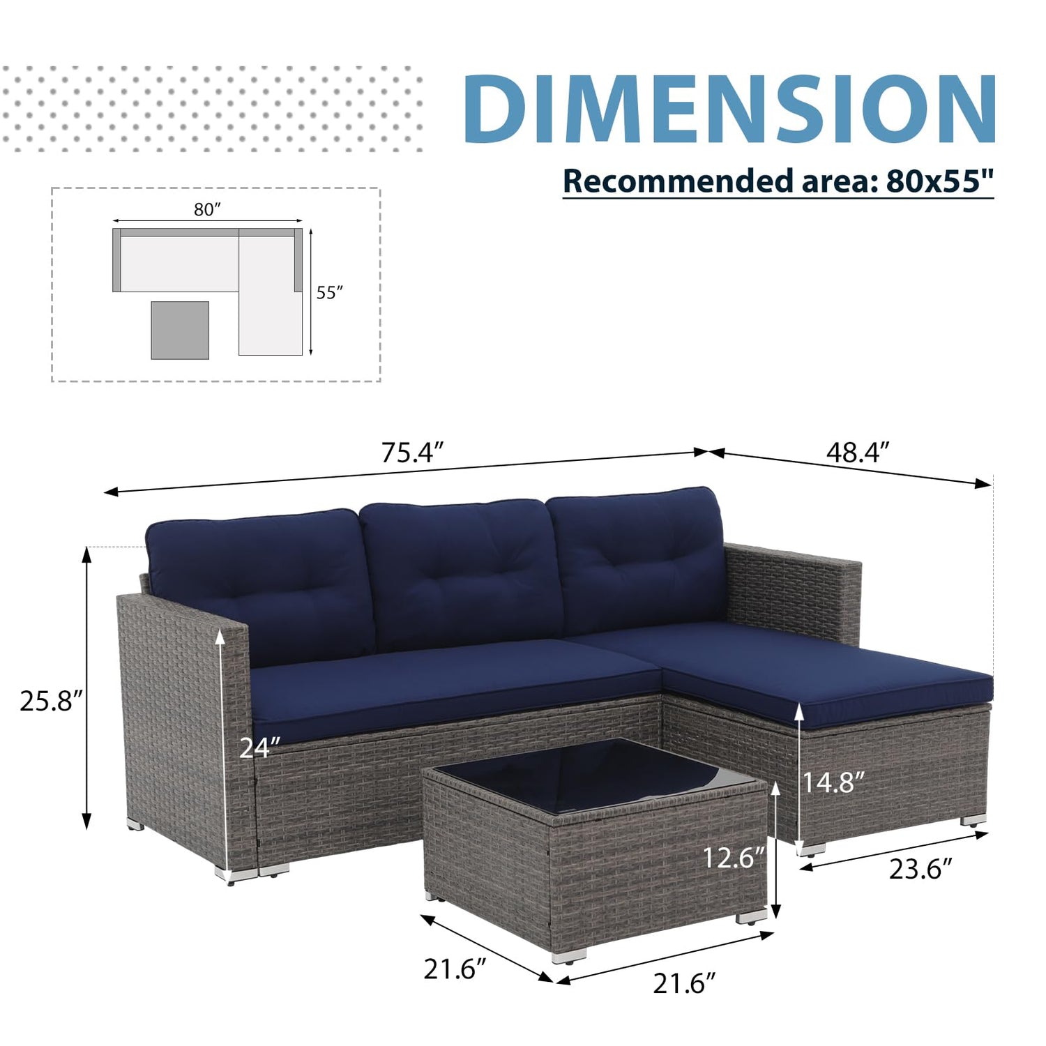 - Package & Dimension: This patio conversation set includes 1 Lounge Chair, 1 Corner Loveseat Sofa and 1 Coffee Table. All necessary hardware and instructions included. Easy to assemble (Please make sure all the 2 boxes of the set arrive before starting assembly)