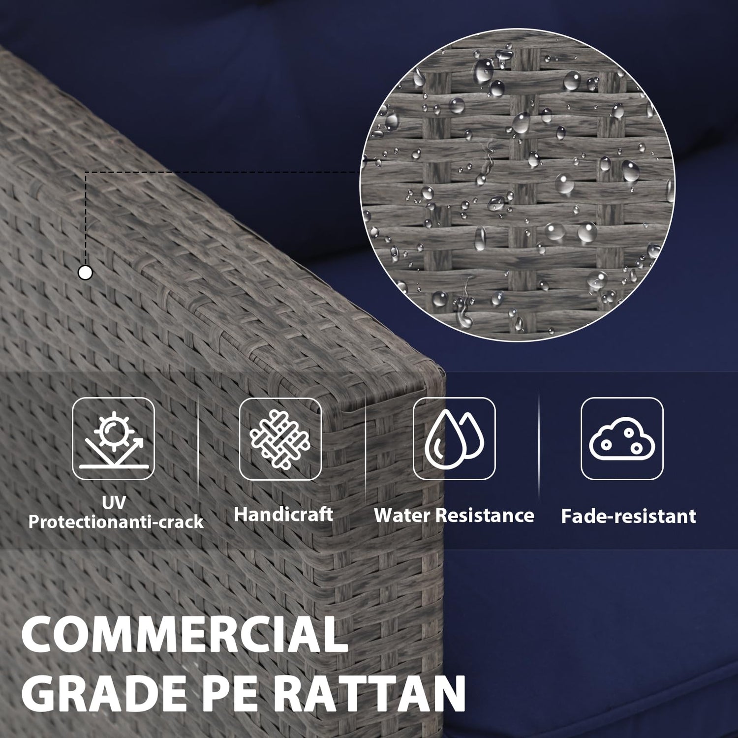 - Durable Material: This outdoor patio furniture set is made of powder-coated iron frame and all-weather hand-woven PE rattan, that is rust, and crack resistant. Each seat can hold up to 250 lbs, so this 3 piece patio set is also sturdy and durable enough to last you for years to come. Proper care, such as covering this rattan outdoor furniture when not in use, will also extend its life