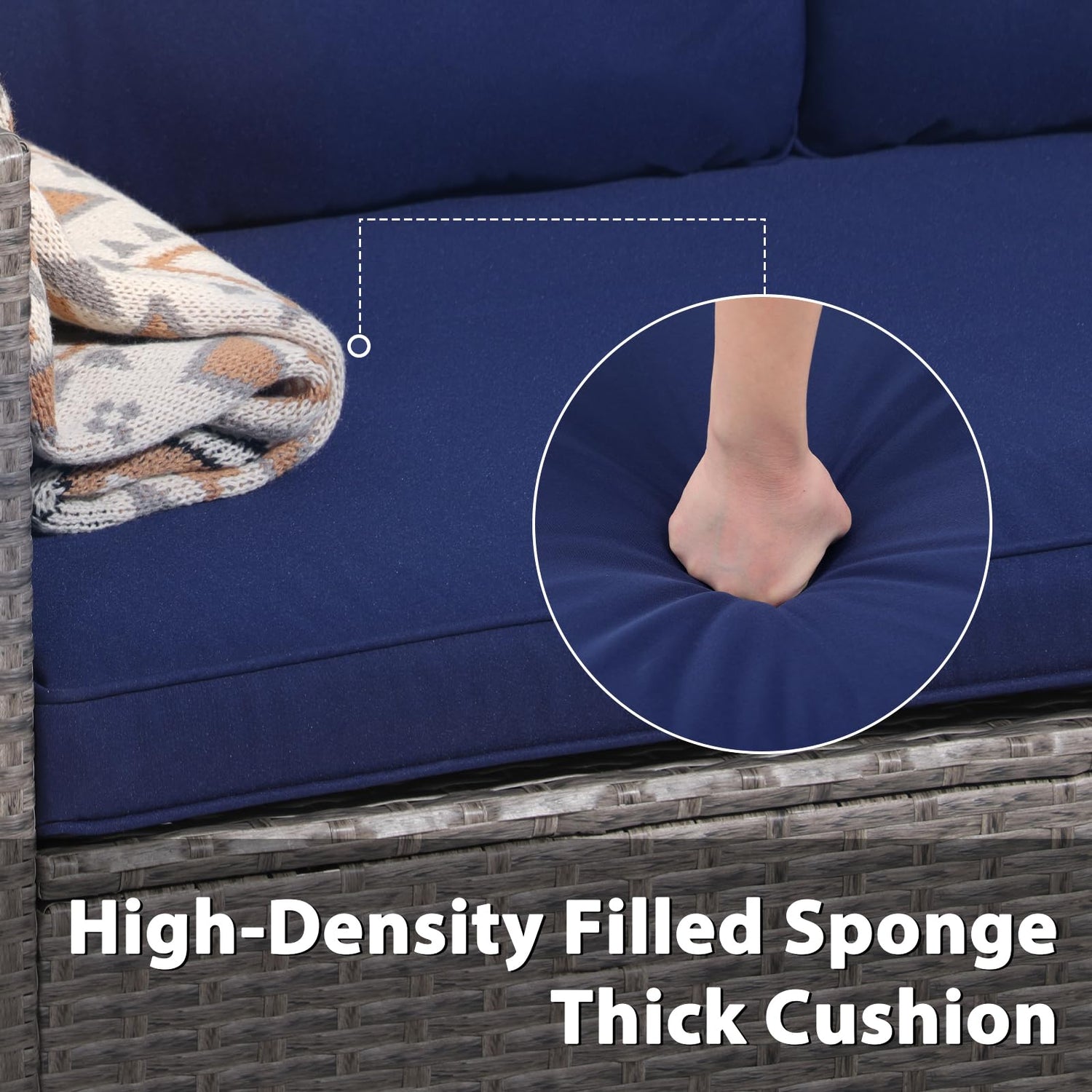 - Comfortable Cushions: The cushions of this small outdoor sectional sofa set are all covered in breathable polyester fabric that is stain and fade resistant. The interior is filled with high-density foam, which has good resilience and can retain its shape well over time. In addition, the cushion covers are zippered for easy daily removal and cleaning