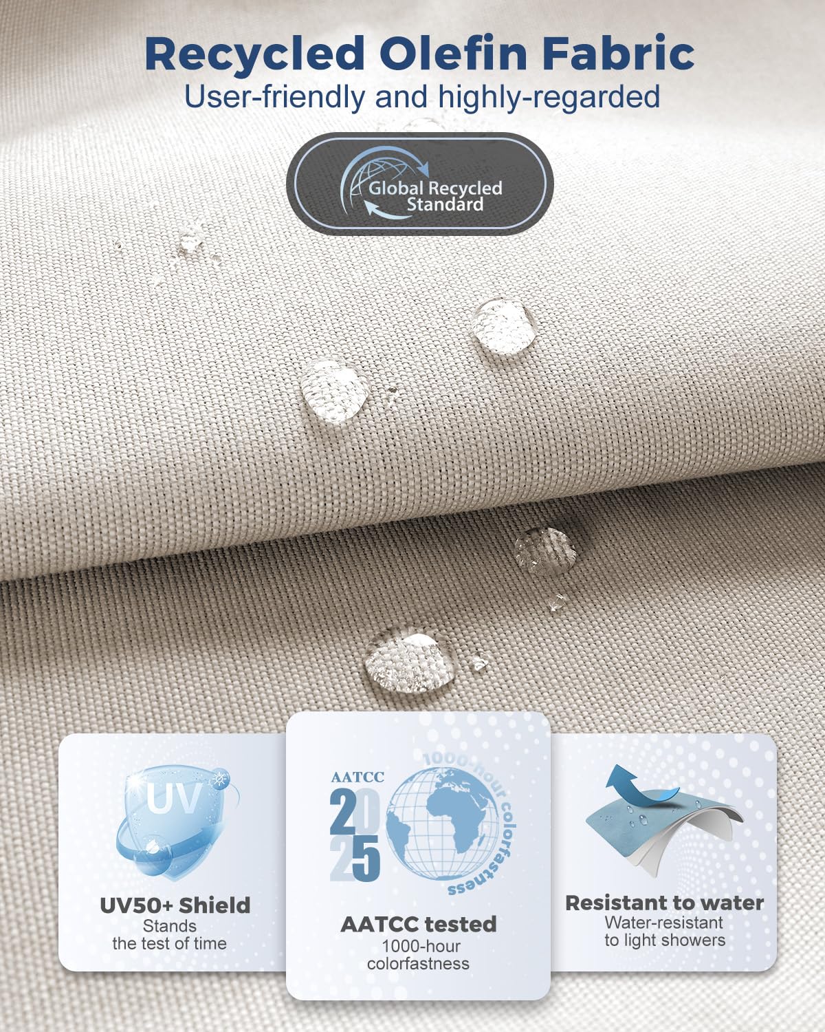 - Upholstery Fabric: Model XN2061 Gray, 100% Olifen(Polyester Blend), 200gsm, 1.5m (59in) Width – For Seat and Backrest Cushion Covering. Excellent outdoor weather resistance