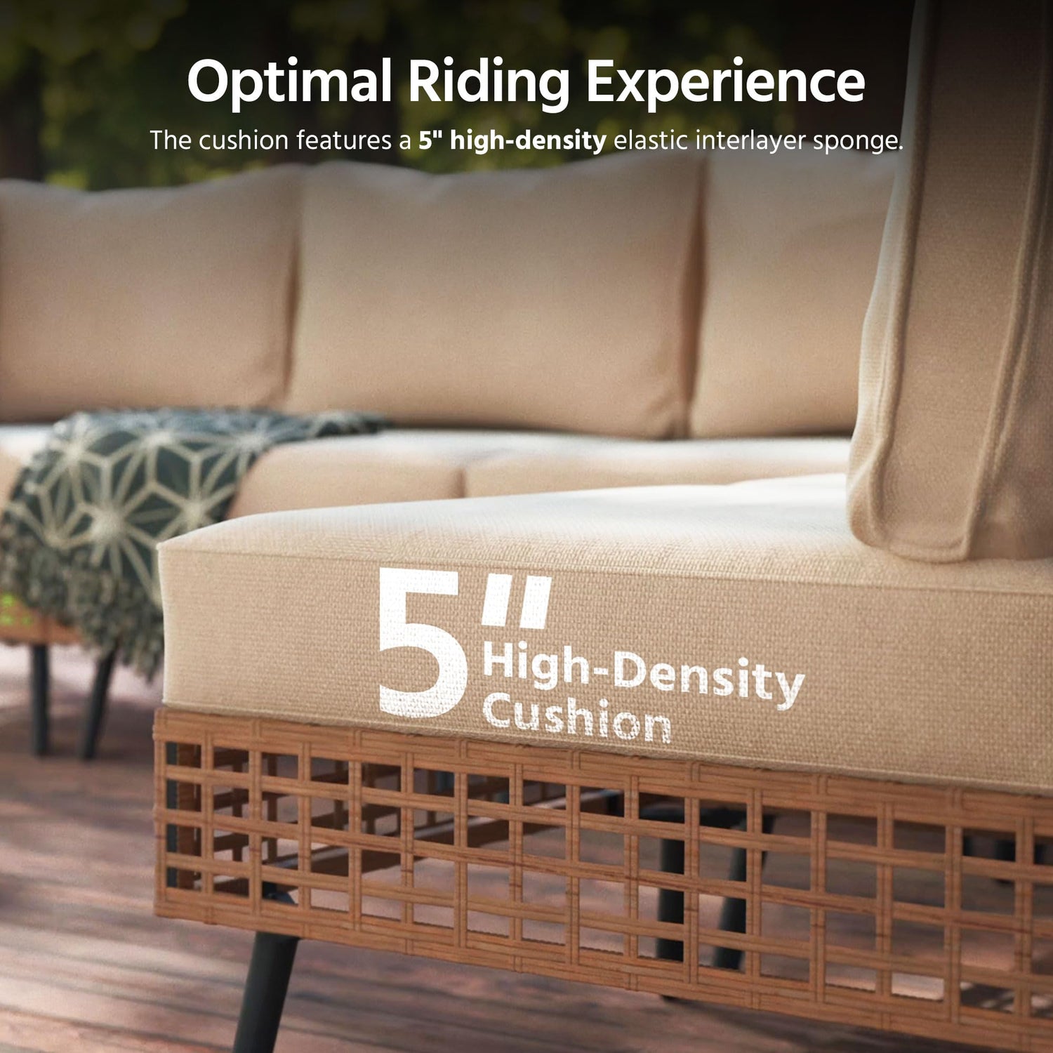 - 【Multifunctional Design】The backrest of this sectional couch is made with widened PE rattan, boosting both comfort and long-term durability. This thoughtful construction lets you sink into a cozy sitting experience every time you use it.