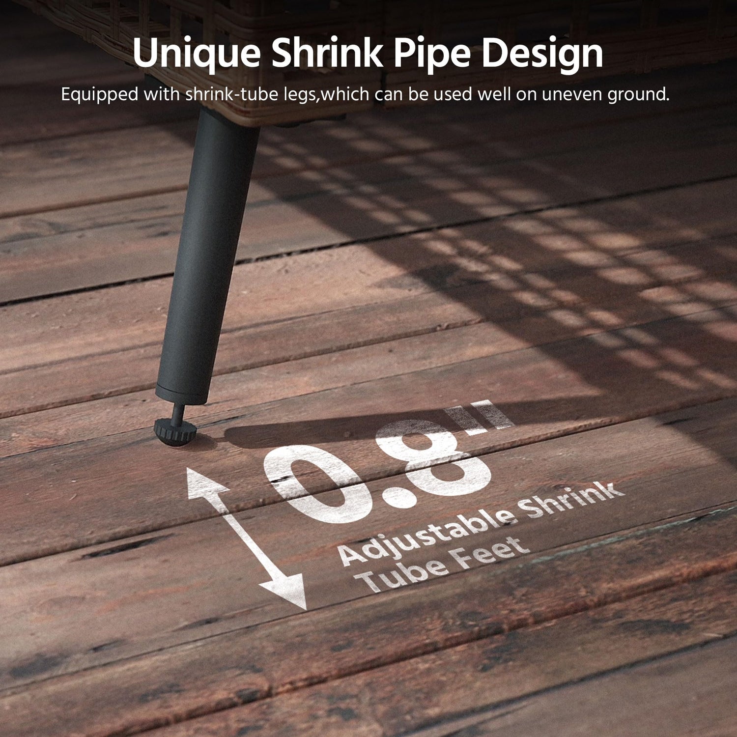 - 【Built to Last & Customizable Comfort】Engineered with a robust galvanized steel frame, this conversation set delivers outstanding strength and longevity. Each chair effortlessly supports up to 300 lbs (136 kg). Customize your seating experience with height-adjustable legs, and enjoy perfect stability on any surface thanks to built-in leveling feet that adapt to uneven ground.