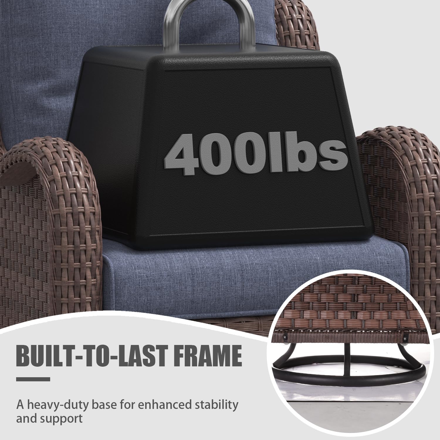 - 360°SWIVEL & DEEP SEATING: As a sophisticated deep, seating outdoor wicker furniture design, this outdoor wicker swivel glider is the one for you. Rest your arms on this furniture, lean back, and you’re done for the day—comfort and elegance you can depend on.