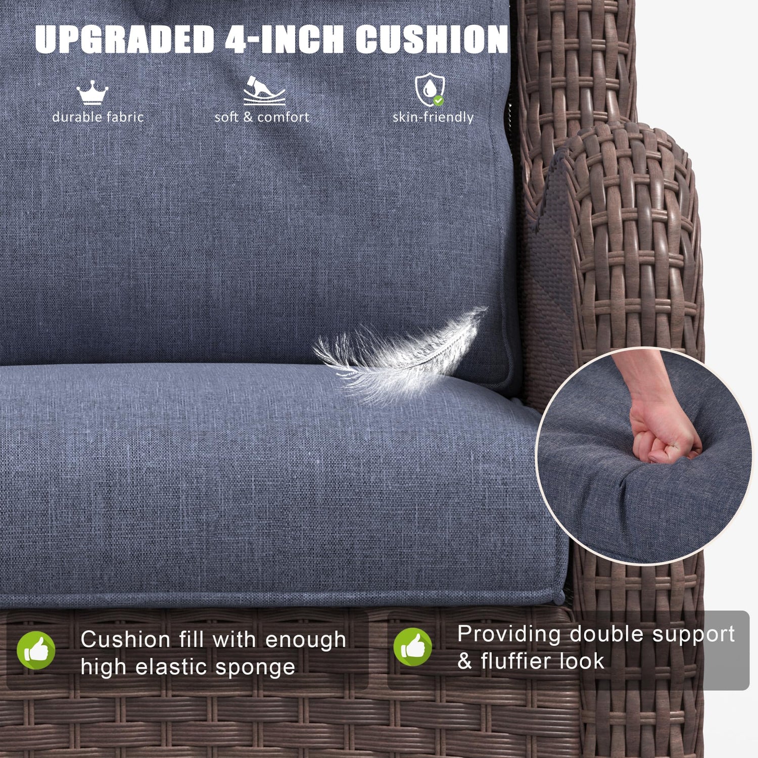 - EXTRA COMFORT CUSHION: Cushions are upholstered in top-of-the-line Olefin fabric, offering ultimate comfort, easy cleanability, and stain resistance. The 4-inch thick cushion is filled with a thickened high-resilience sponge to stay fluffy & non-deformation and give your body plenty of support.