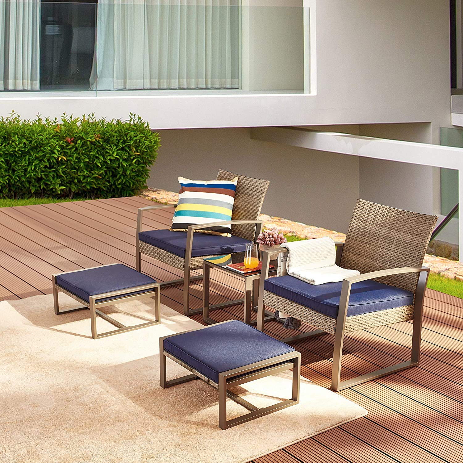 - PERFECT COMBINATION - This 5-piece wicker conversation set is a perfect addition for your patio. You can put the pieces in variety formation as you like, creating the whole new look and feeling for your garden, porch, backyard or poolside. When you don't need to use it, you can remove it easily.