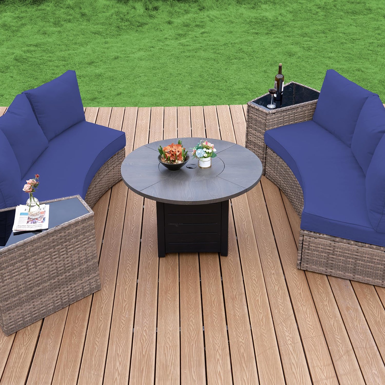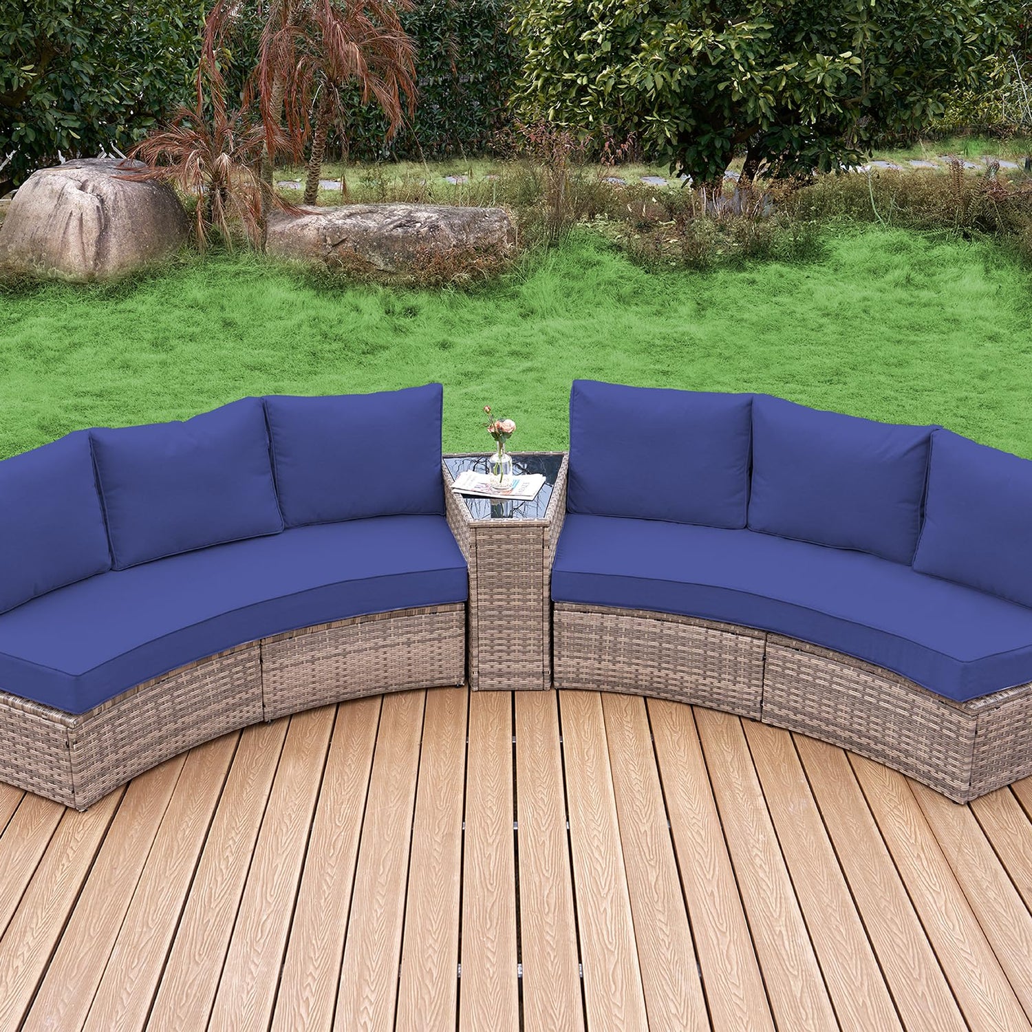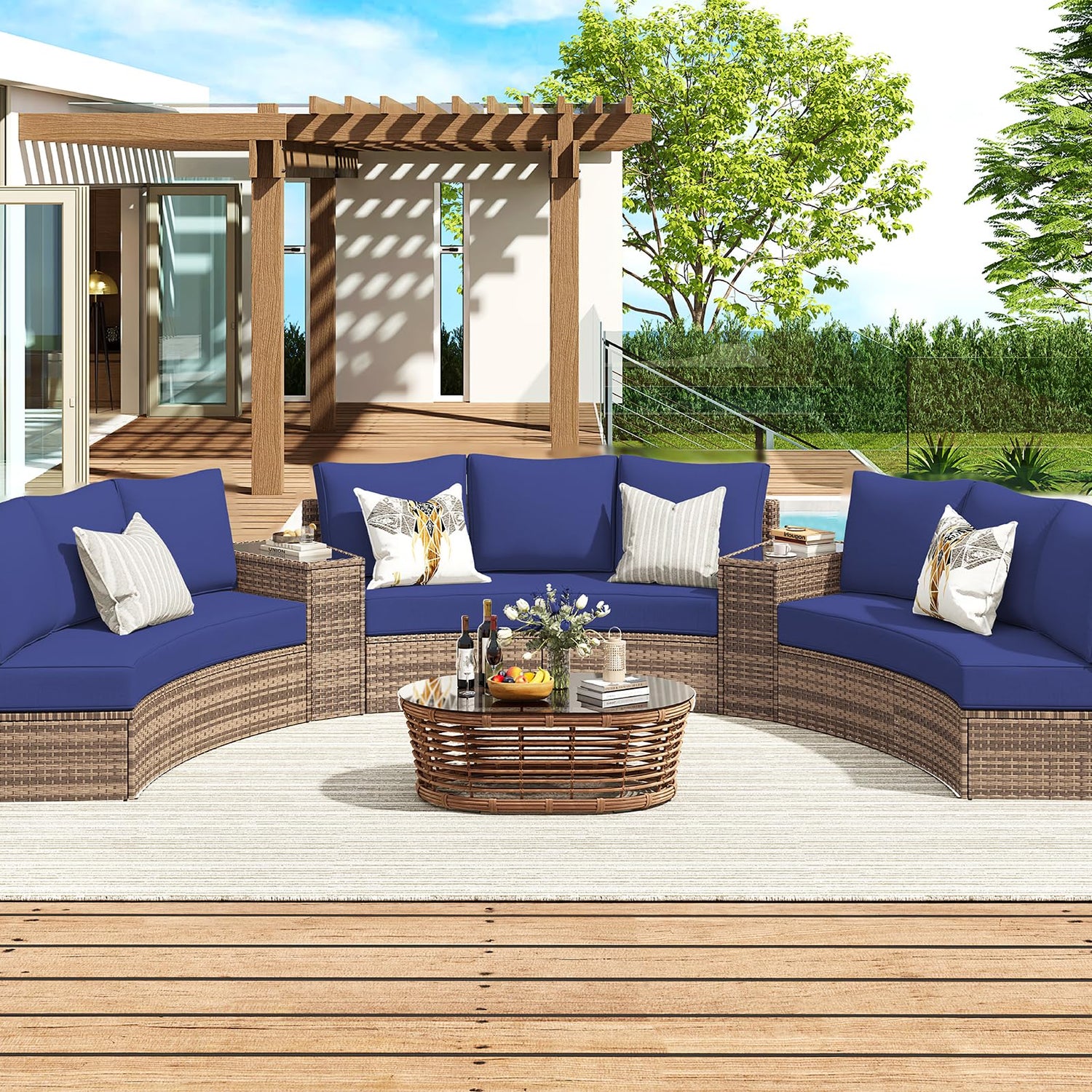 LUXOAK Patio Furniture Sets, 6 Piece Half-Moon Sectional Round Sofa Set, Outdoor Patio Furniture with Cushions for Beach, Pool, Balcony, Blue