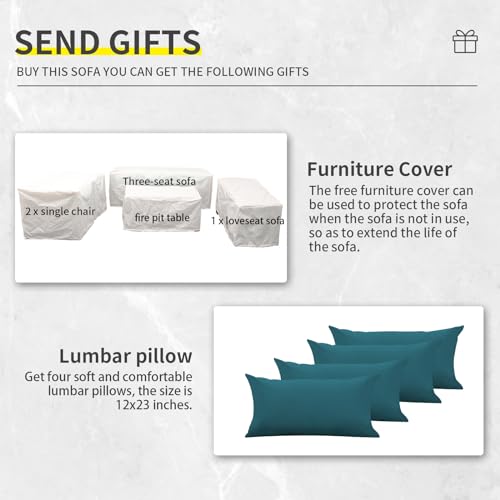 Lviden 5 Piece Wicker Patio Furniture Sets Outdoor Conversation Set, PE Rattan Sectional Sofa Couch with 45" Fire Pit Table and Non-slip Peacock Blue Cushions, Furniture Covers included