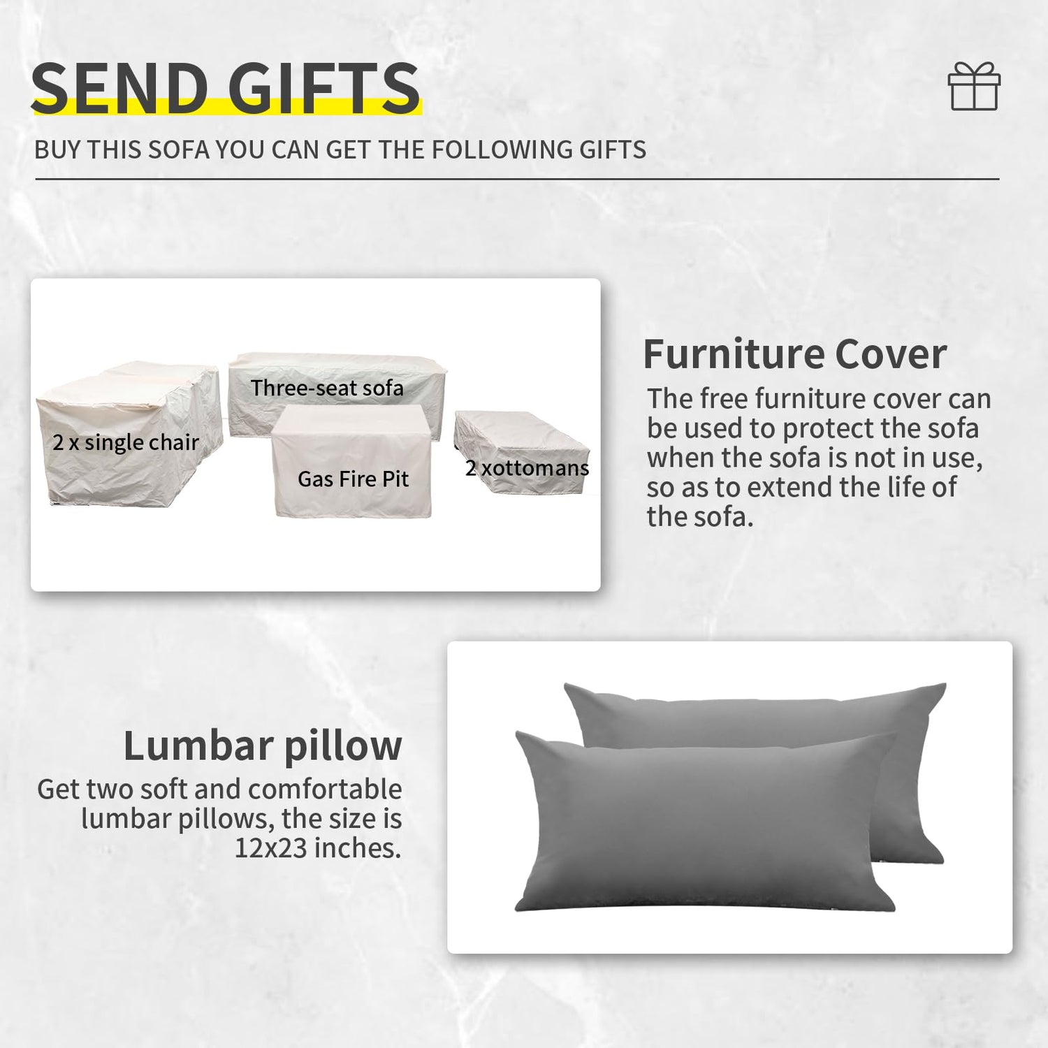 • GIFTS: Five furniture covers and two lumbar pillows are sent as gift to you
