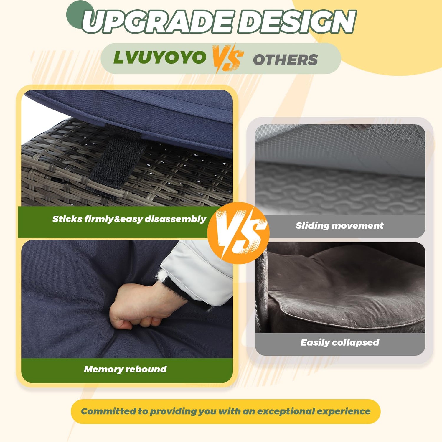 - Ultra-Comfortable Materials:Crafted with waterproof sponge pads, the widened and thickened 3.1 - inch seat cushions offer unparalleled comfort. Plus, the thick oversized cushions are easy to clean, ensuring long - lasting coziness. The wicker seats and cushions can be sticked to each other, which is convenient for cleaning and replacement.
