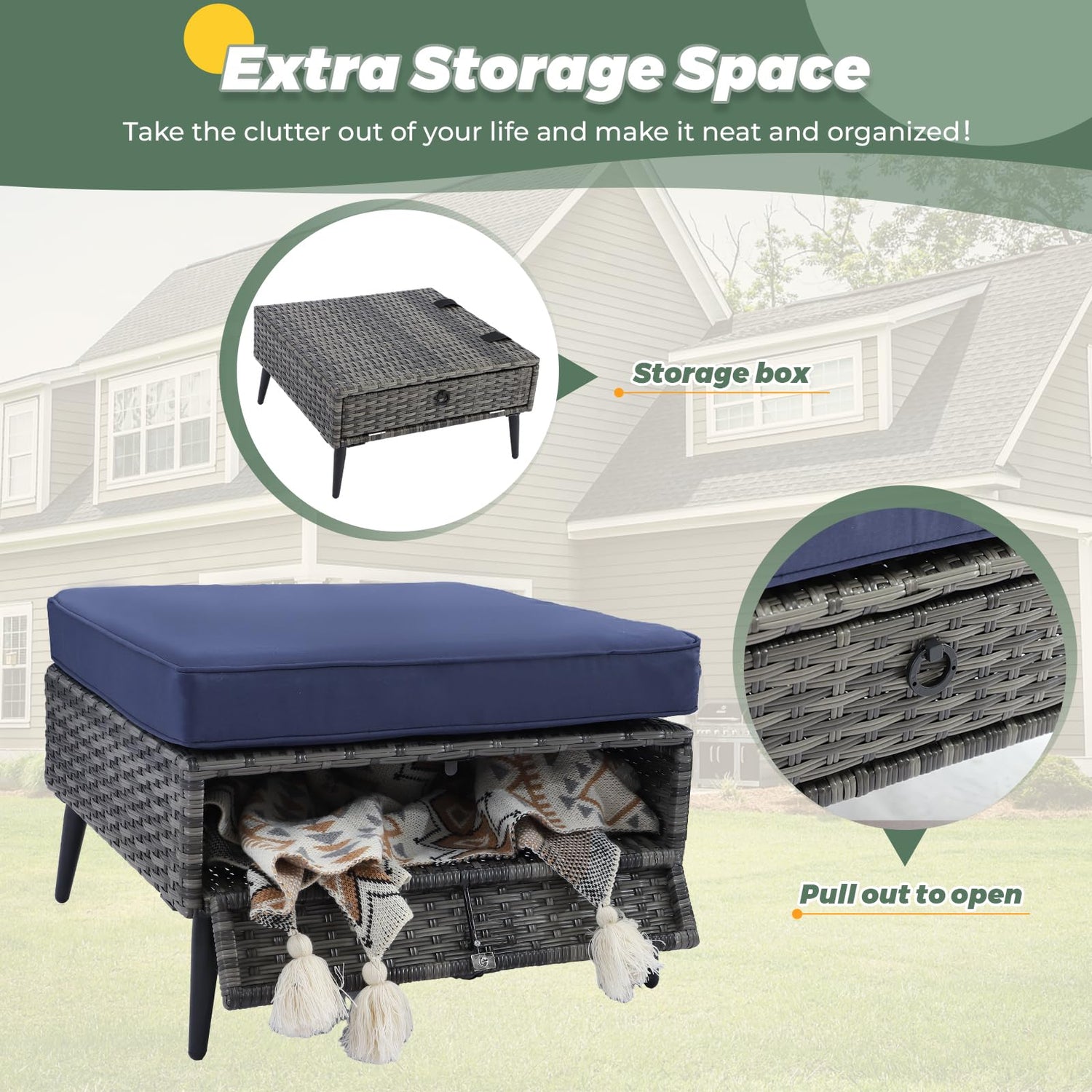 - Fast Simple Assembly: All assembly tools are included, and clear instructions make assembly quick and hassle - free. The patio furniture set includes 2 corner chairs, 4 armless chairs, and 2 ottomans, making it a complete solution for your outdoor space.