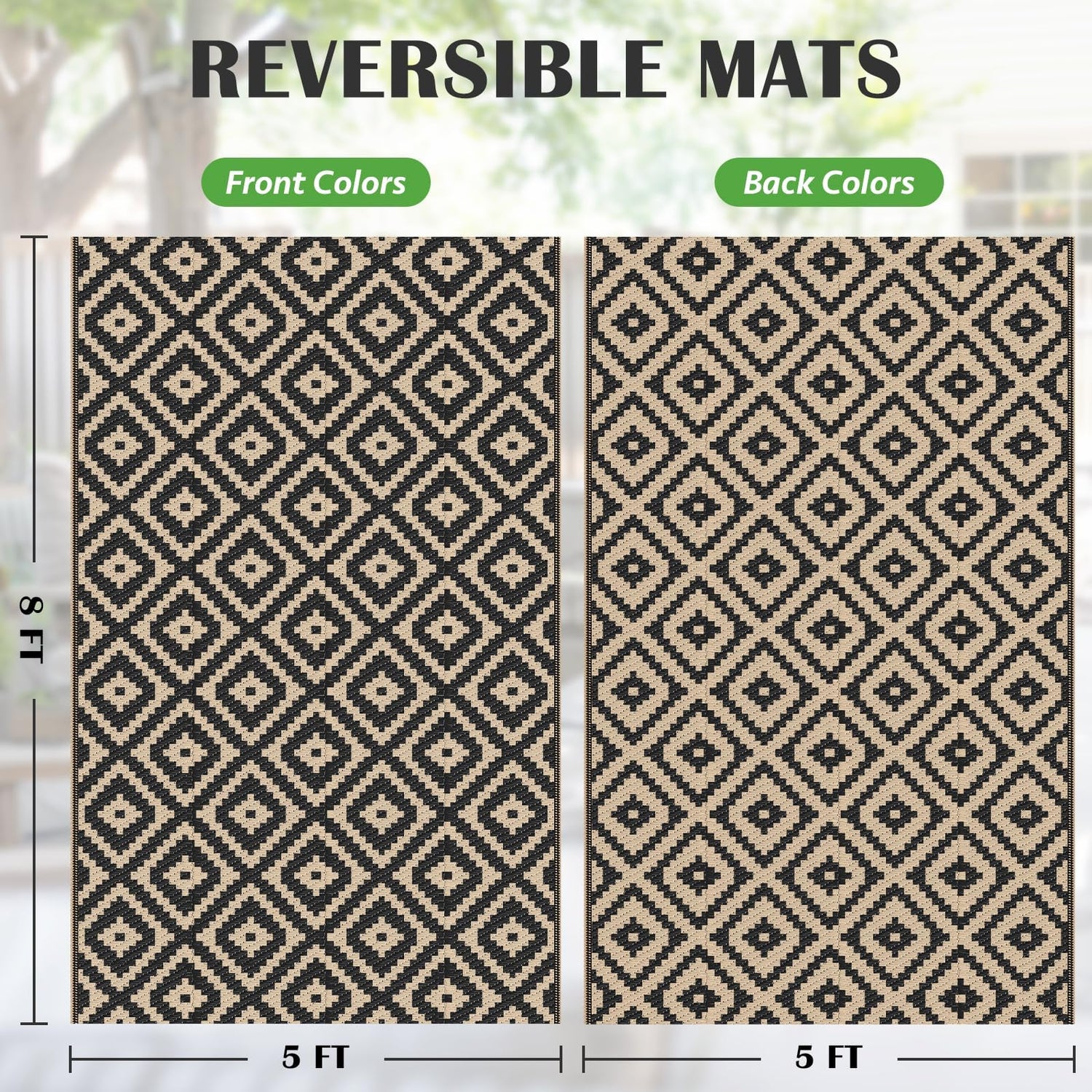 - Versatile: Featuring double-sided pattern, this outdoor plastic straw rug complements patio furniture, camping sites, or balcony gardens perfectly. Available in 4 sizes from 4x6 ft to 8x10 ft, it's ideal for patios, porches, gardens, decks, picnics, and RV camping