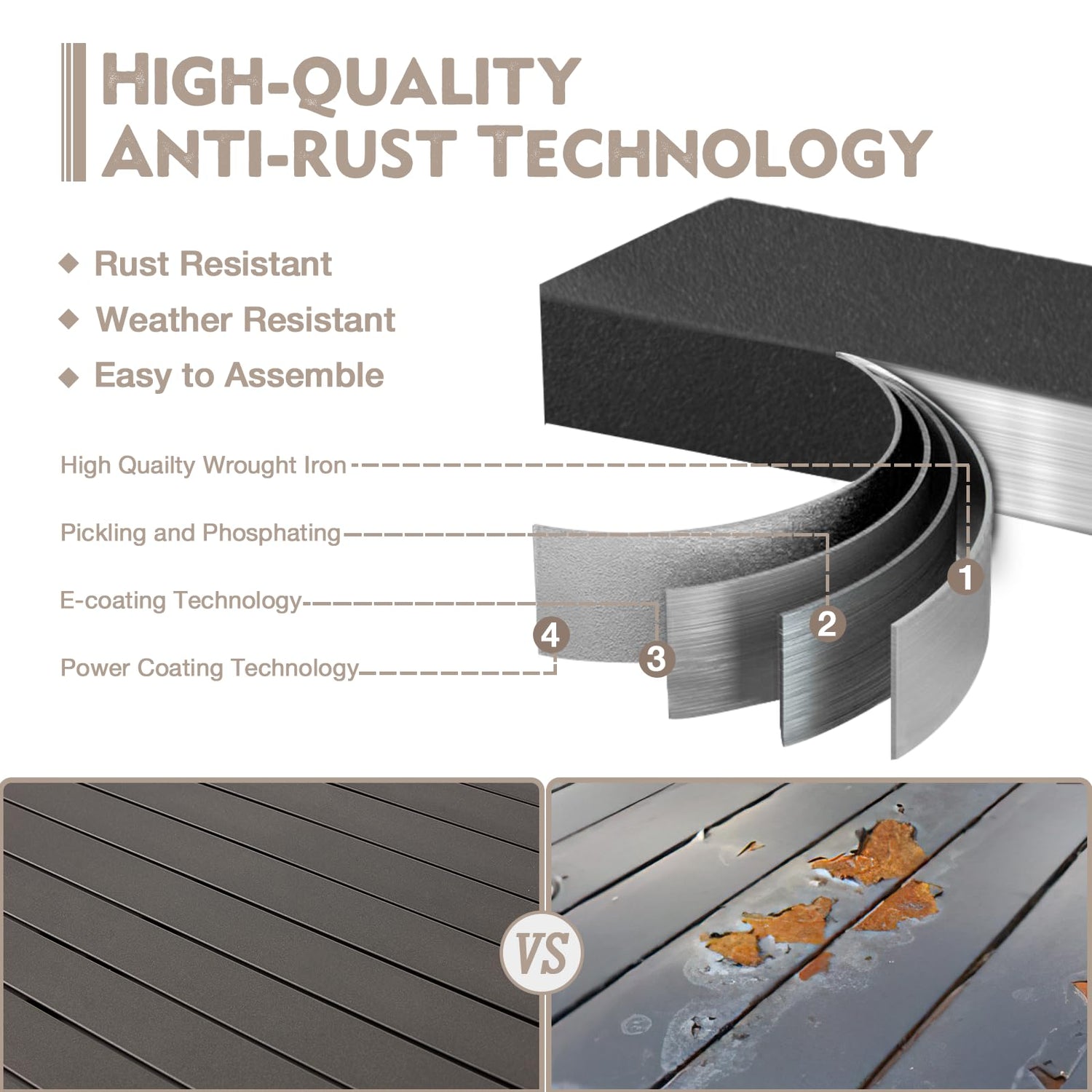 - Sturdy E-Coating Frame: Constructed with a powder-coated steel frame and additional E-coating, these patio table and chairs are protected against rust. Ideal for outdoor and indoor use on porch, gardens, poolsides, backyards