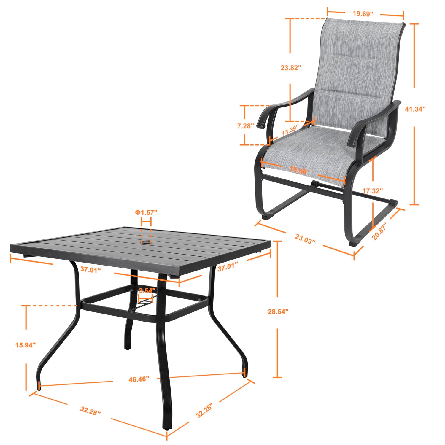 NUU GARDEN 5-Piece Outdoor Dining Set, All Weather Outdoor Padded Textilene Patio Chairs and Square Dining Table with Umbrella Hole for Backyard, Patio, Garden, Deck, Light Black and Grey