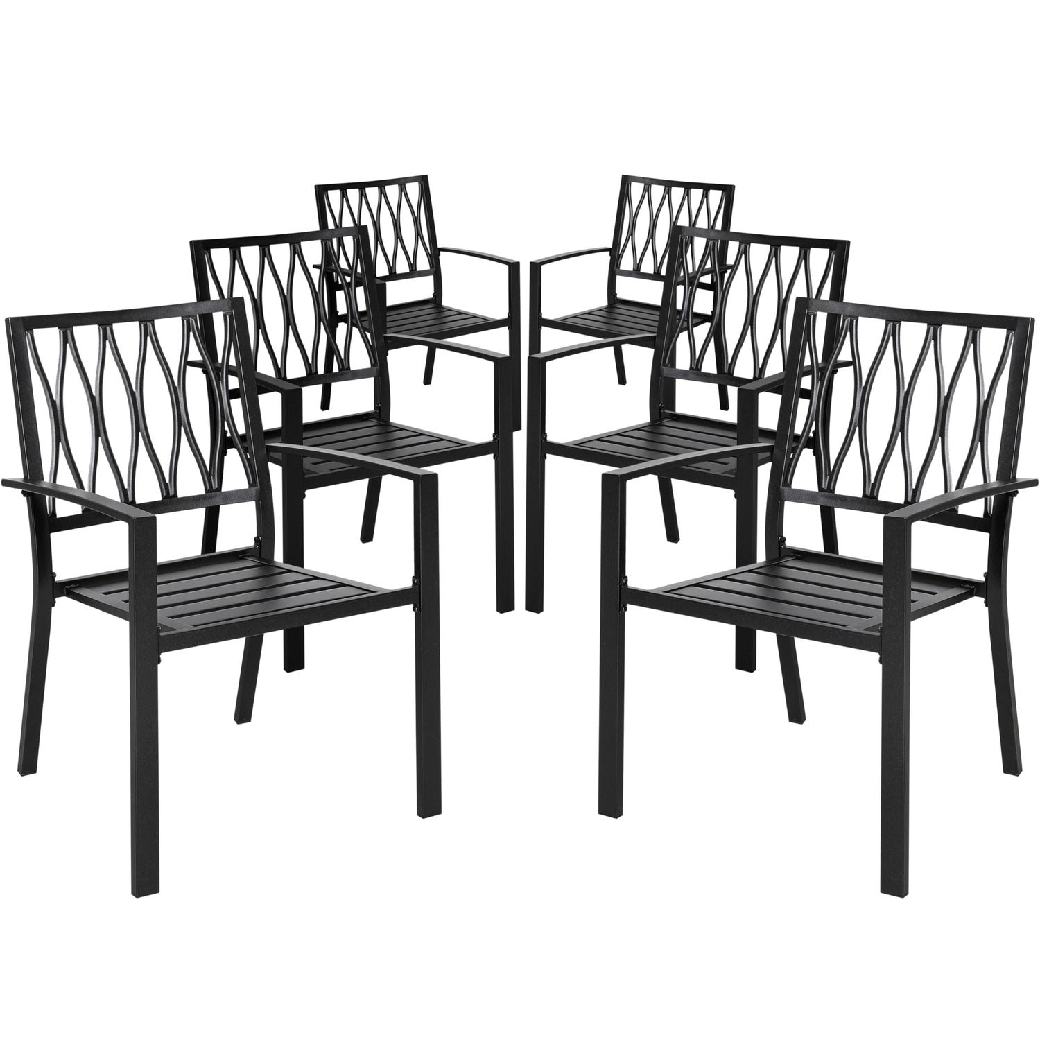 NUU GARDEN 6 Piece Patio Dining Chairs, Stackable Outdoor Dining Chair with Metal Frame, Bistro Patio Chairs for Backyard Lawn Deck Poolside Porch, Black