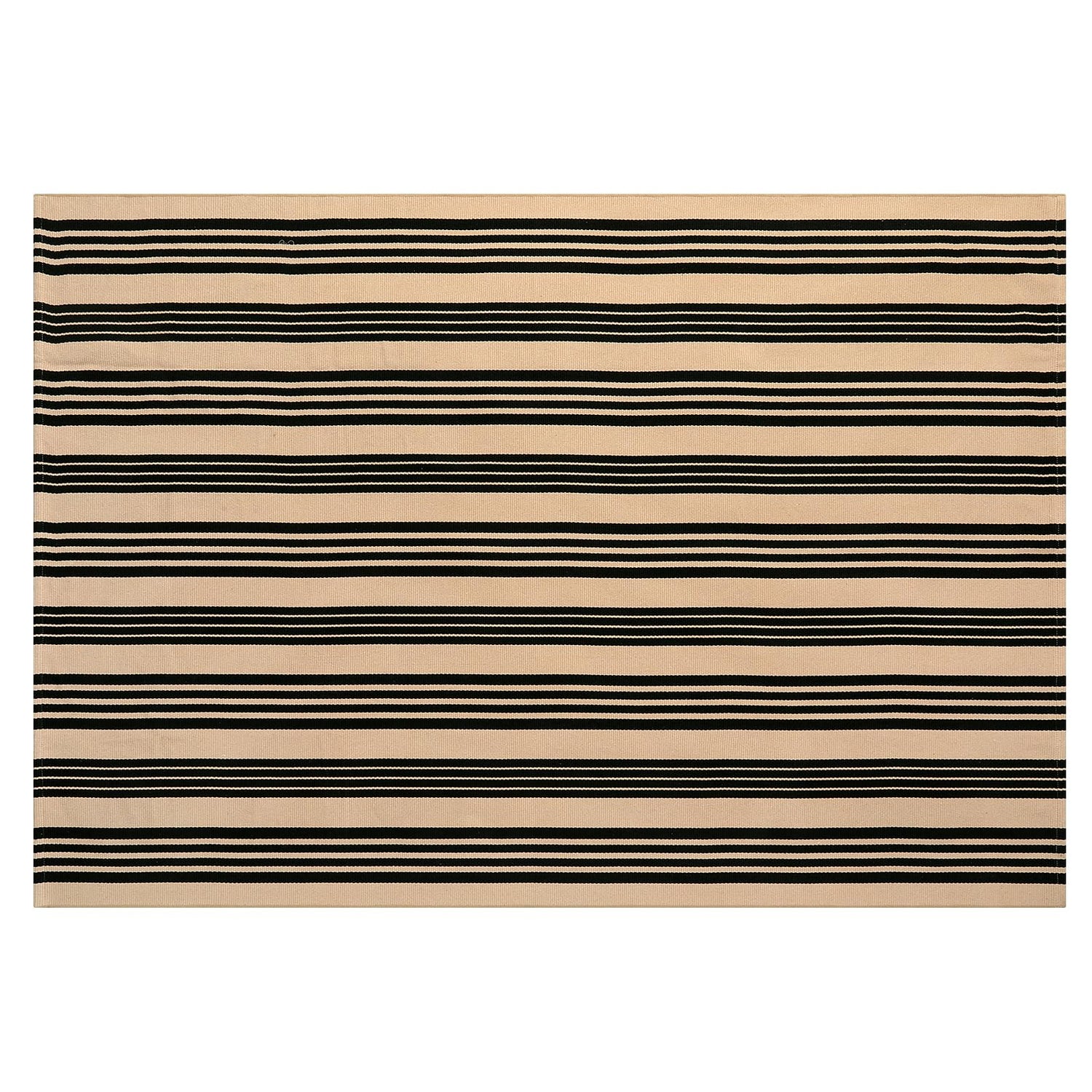 OJIA Outdoor Patio Rug 5'x7', Black and Tan Striped Outdoor Rugs Machine Washable Area Rugs Cotton Hand Woven Indoor Outdoor Rugs for Bedroom/Living Room/Front Porch/Deck/Backyard/Camping