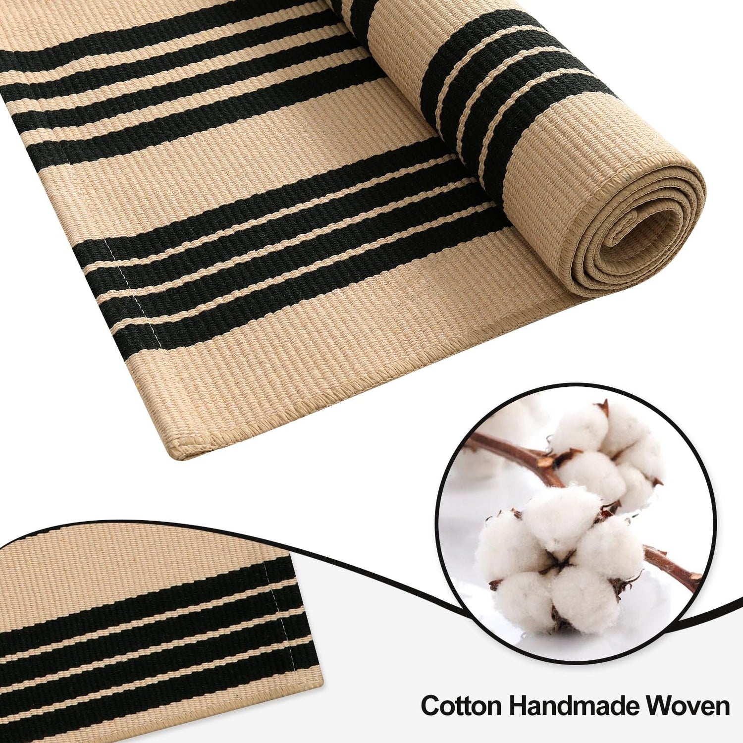 - Excellent Durability: Made of high-quality cotton, OJIA 5x7 rug is comfortable to step on barefoot and can withstand foot traffic and weather changes all year round. Delicate hand-woven area rug in classic black and white stripes, give your house a new look.