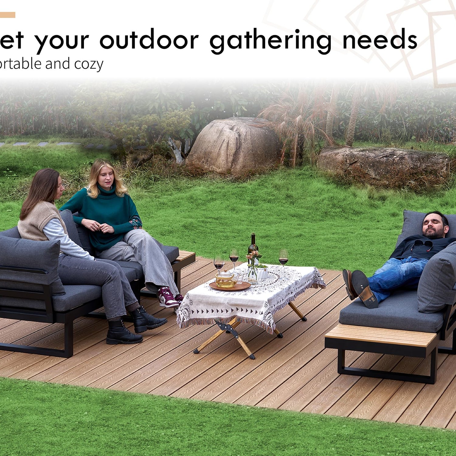 • Versatile Adjustable Design: With soft cushions and adjustable seats, raise the height of outdoor sofa to create a cozy reading atmosphere or lower it to relax and take a moment to rest.
