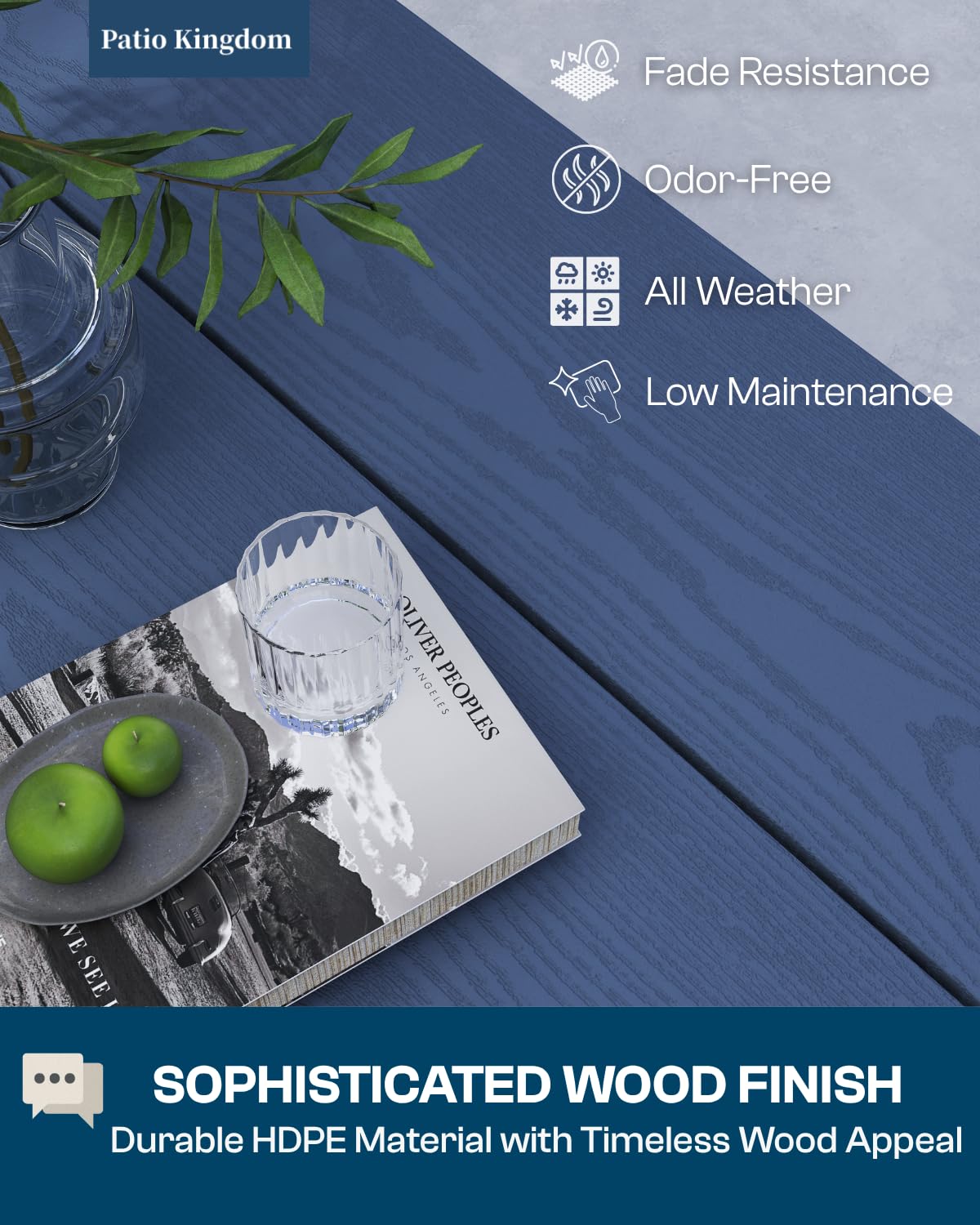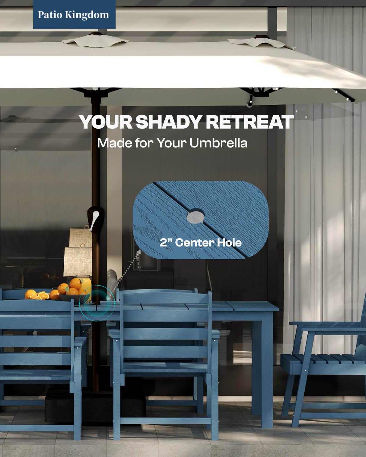 Patio Kingdom 9-Piece Outdoor Dining Set for 8, 75.2'' HDPE Table with Umbrella Hole & Chairs, Weather-Resistant Patio Furniture for Garden, Lawn, or Poolside (Navy Blue)