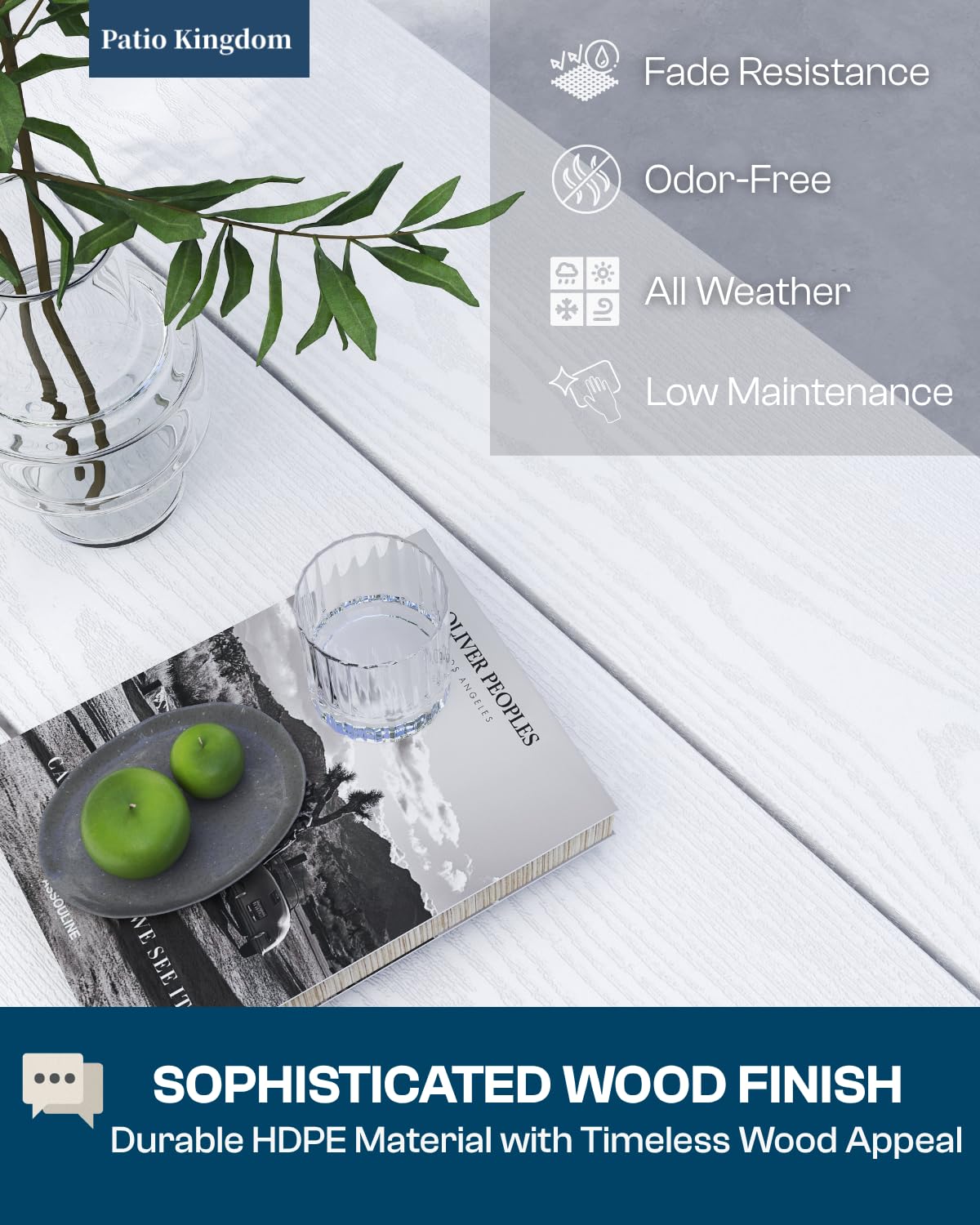 - Durable HDPE with Woodgrain Look: Crafted from fade- and crack-resistant HDPE, this outdoor dining set offers long-lasting performance without sealing or staining. Its natural wood-like texture enhances any patio or lawn space.