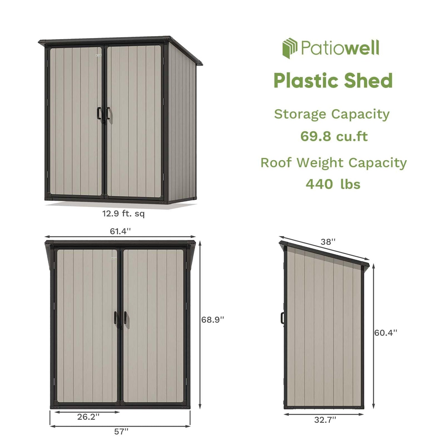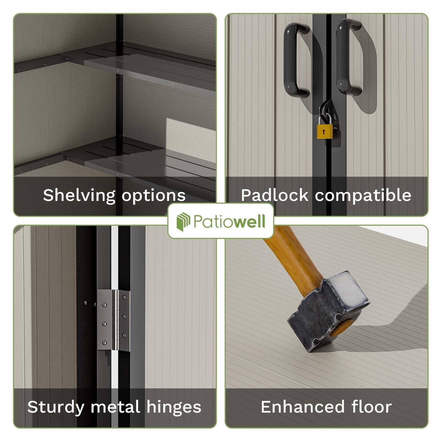 Whether you need to store garden supplies, outdoor toys, or seasonal decorations, the Patiowell Outdoor Plastic Storage Shed has you covered. Keep your outdoor space tidy and organized while protecting your belongings from the elements with this reliable and functional storage solution. Transform your backyard into a clutter-free oasis with the Patiowell Outdoor Plastic Storage Shed.