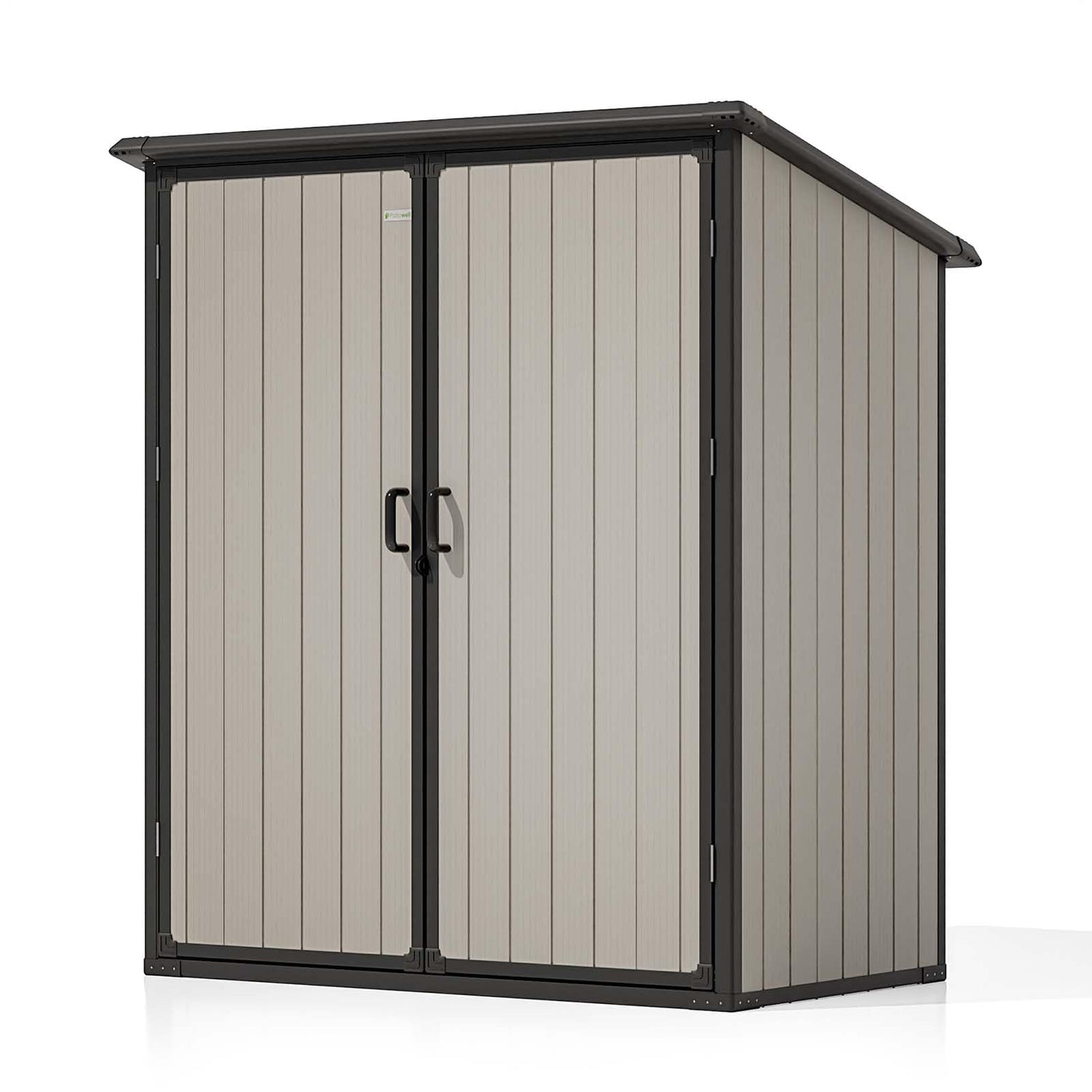 Patiowell 5 x 3 FT Outdoor Storage Shed, Resin Waterproof Cabinet with Adjustable Shelves and Lockable Doors for Patio Furniture, Pool Accessories and Tools, Beige