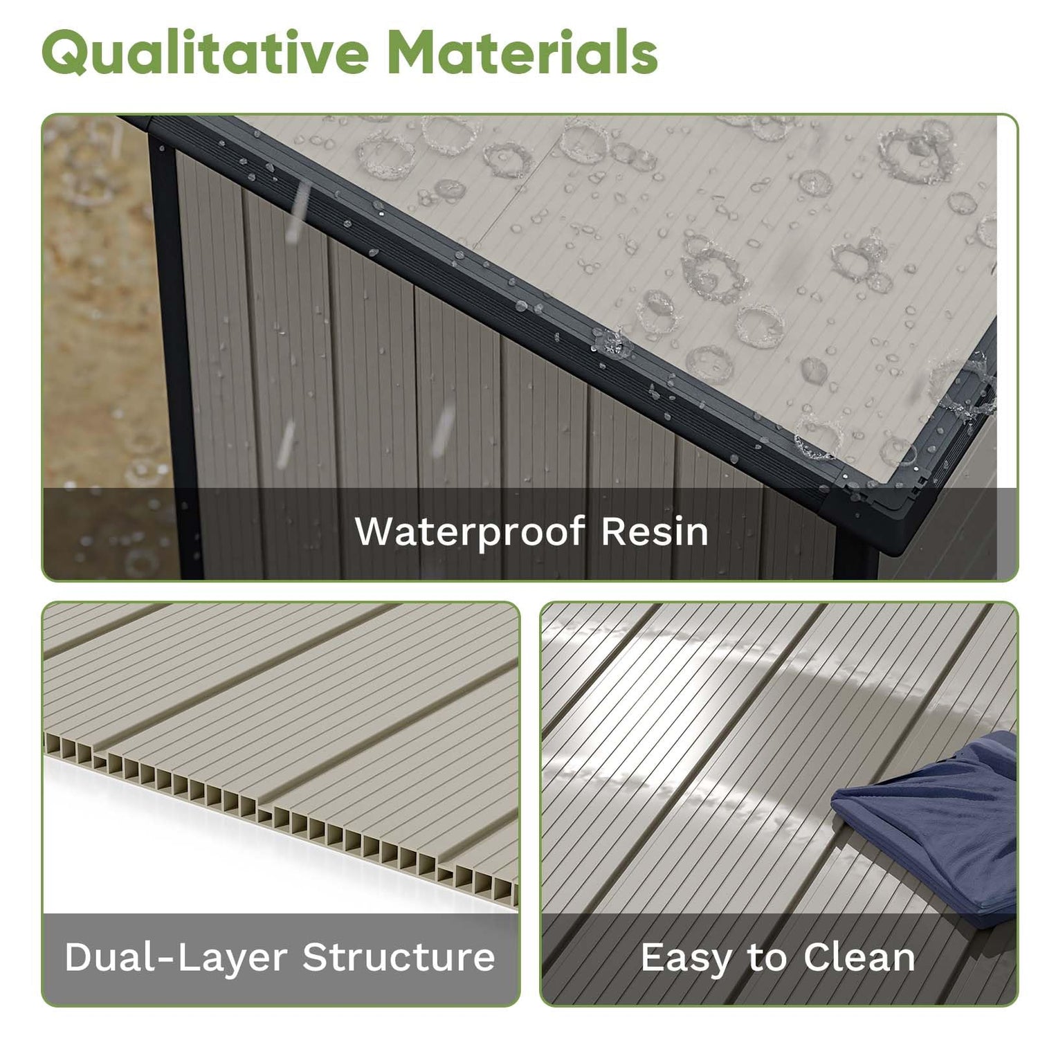 • 【Multi-functional Design】With its versatile flat-top design, this shed not only offers storage space but also serves as a convenient work surface or additional seating area, adding functionality and versatility to your outdoor living space.