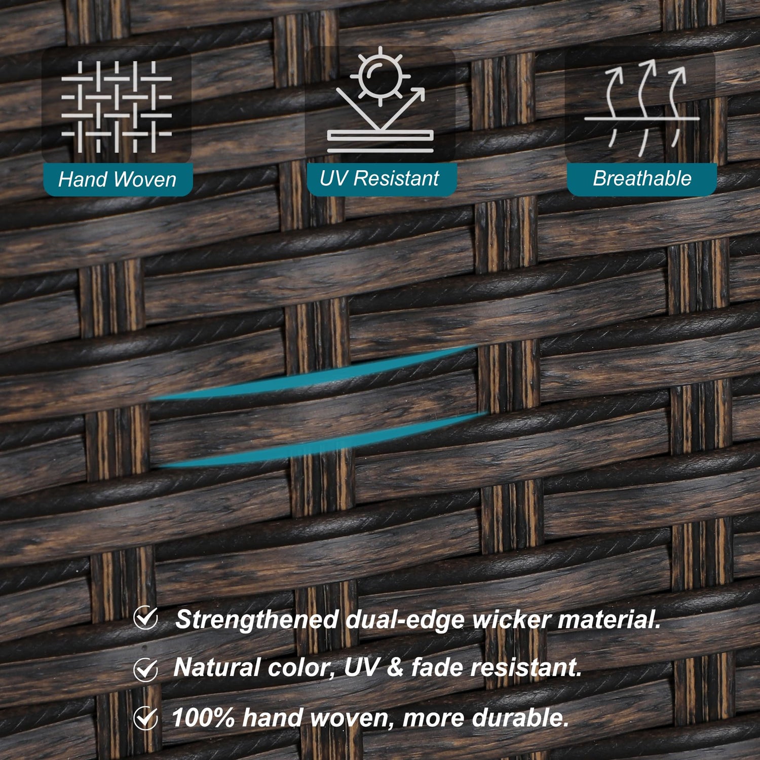- 【Strong Wicker Chairs】 Made of tightly woven weather-resistant brown rattan, UV & fade resistant, long service life for all seasons. Natural textured wicker with strong wrapped edges, won’t tear easily, much more durable and stronger than other normal rattan materials.