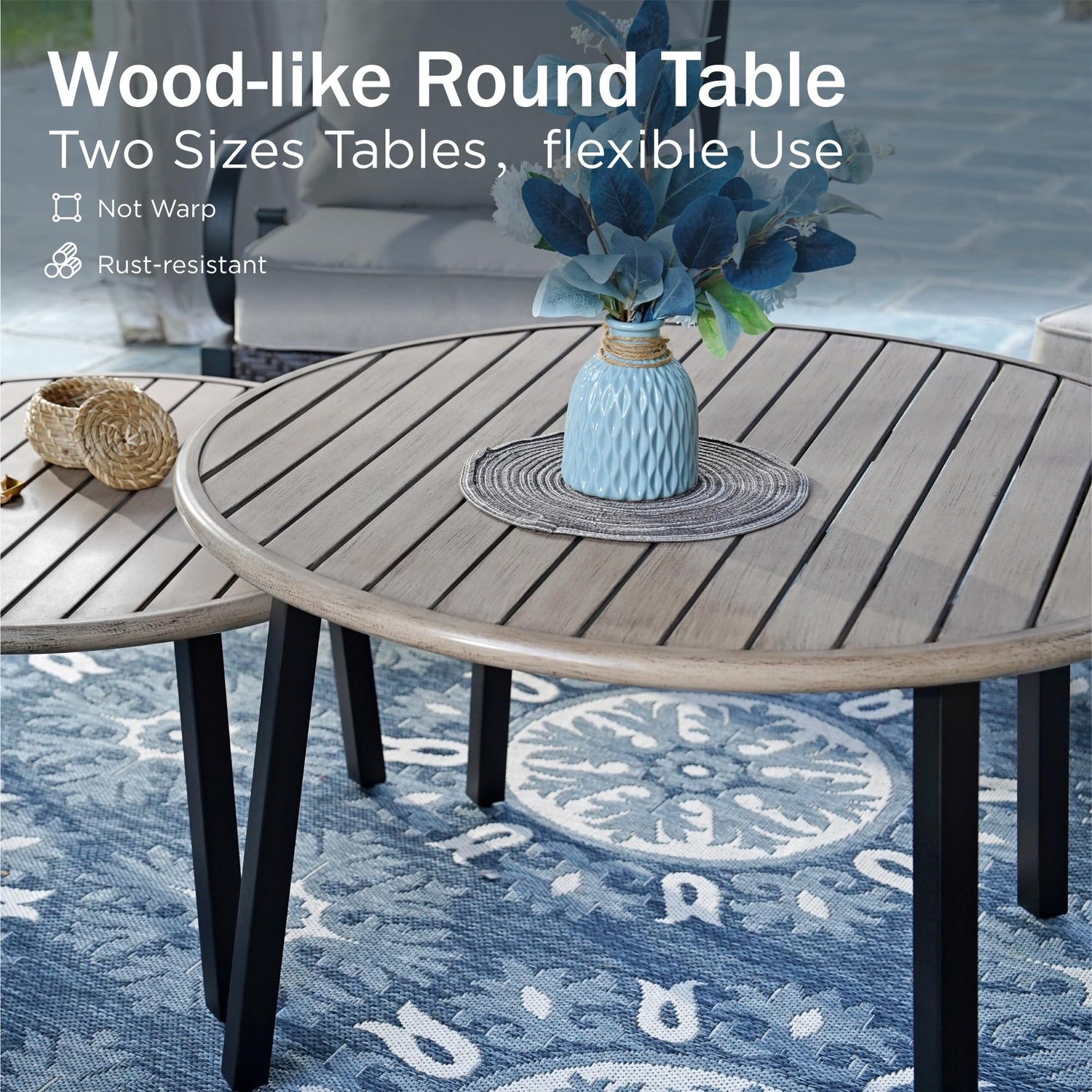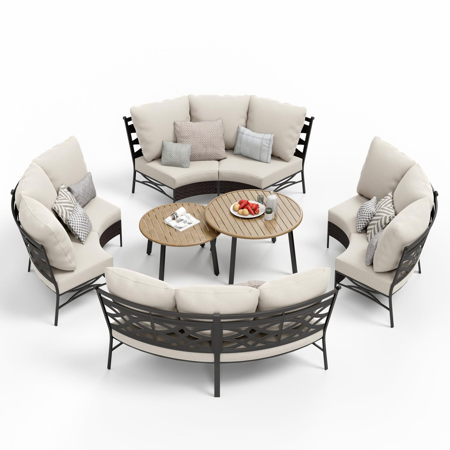 PHI VILLA Outdoor Patio Furniture Set 10 Piece, Round Sectional Curved Outdoor Sofa for 8 Persons with 2 Round Table for Garden, Poolside, Balcony, Backyard