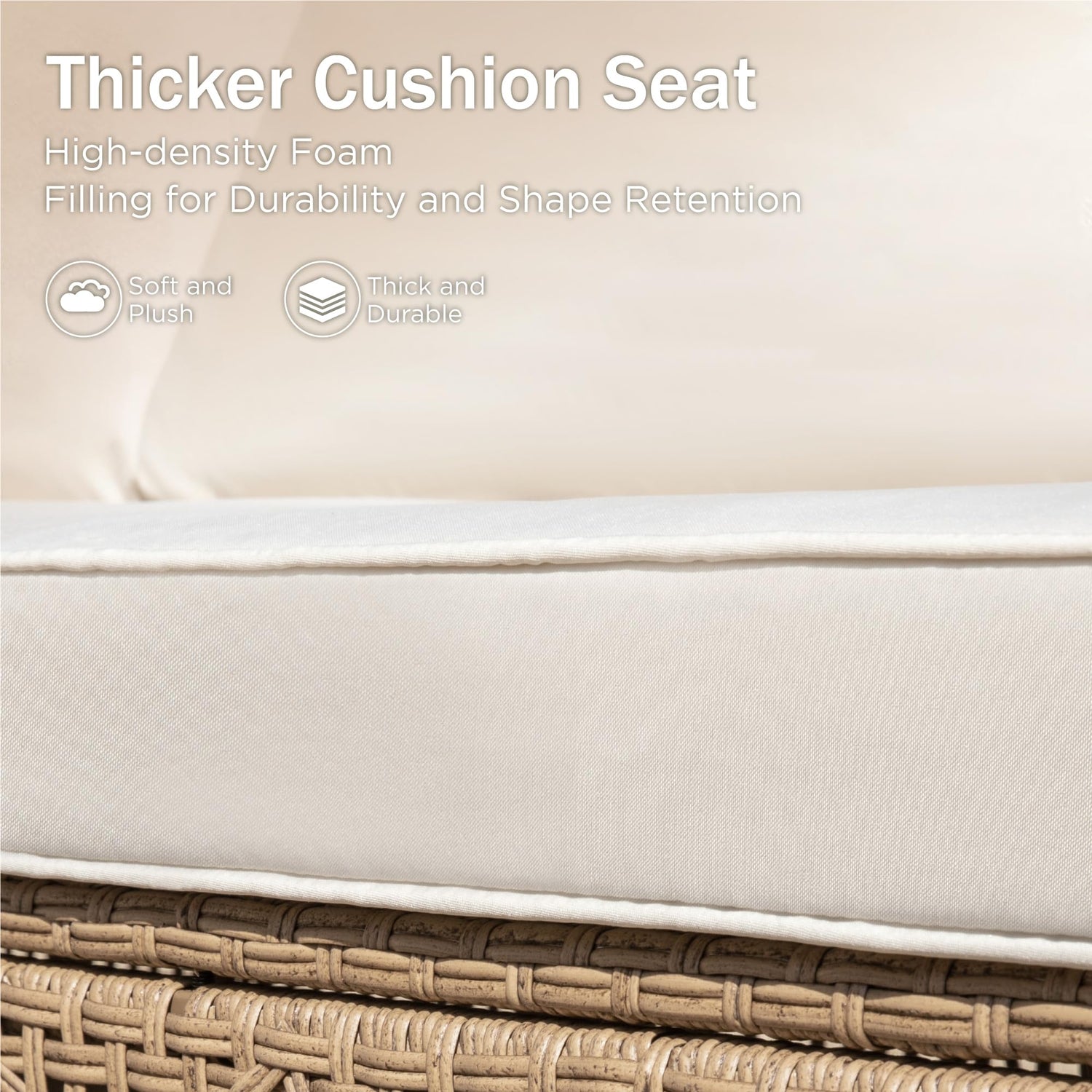 - 【All-Weather Construction for Long-Term Use】 Built with a powder-coated metal frame wrapped in durable, weather-resistant PE wicker. Cushions are fade-resistant and water-repellent, while every seat supports up to 350 lbs, ensuring comfort and lasting performance in any outdoor setting
