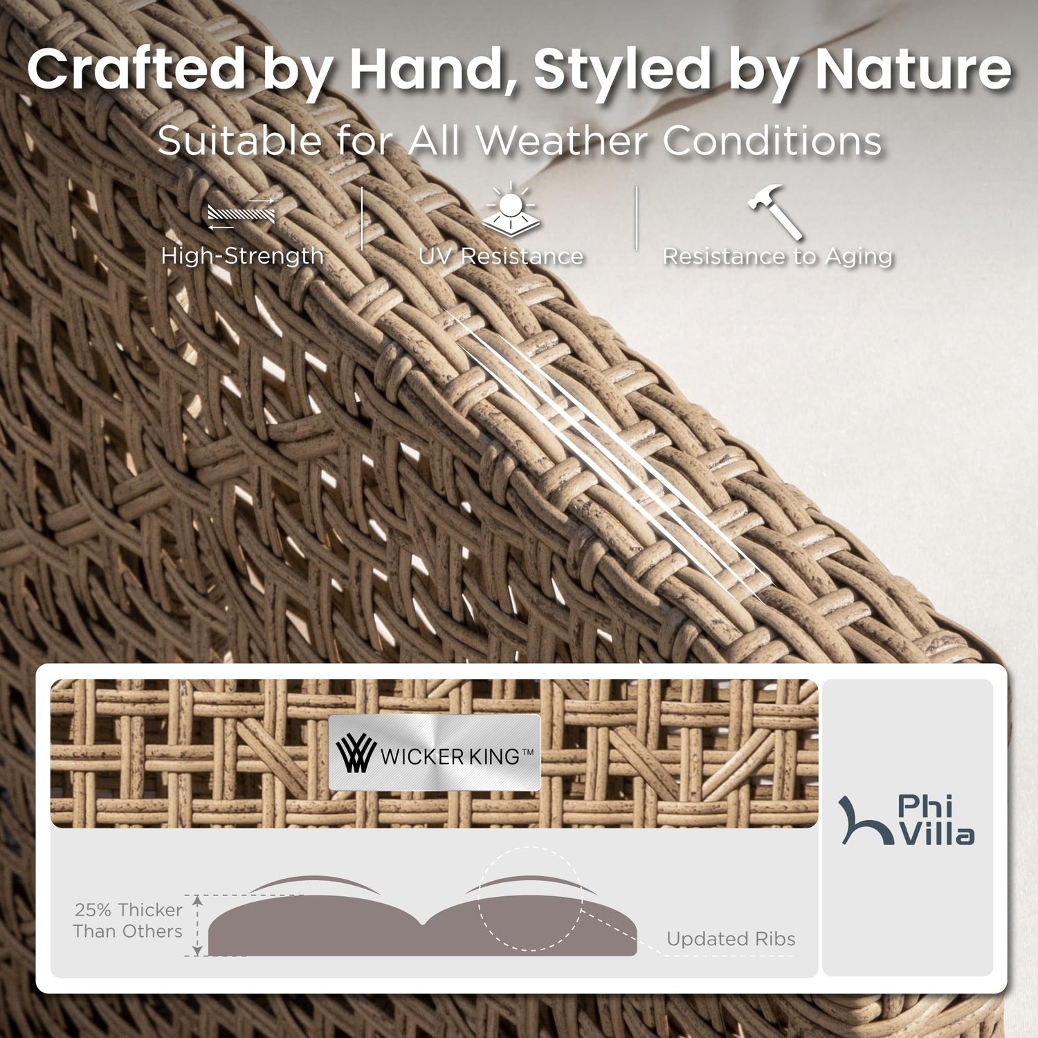 - 【All-Weather Construction for Long-Term Use】 Built with a powder-coated metal frame wrapped in durable, weather-resistant PE wicker. Cushions are fade-resistant and water-repellent, while every seat supports up to 350 lbs, ensuring comfort and lasting performance in any outdoor setting