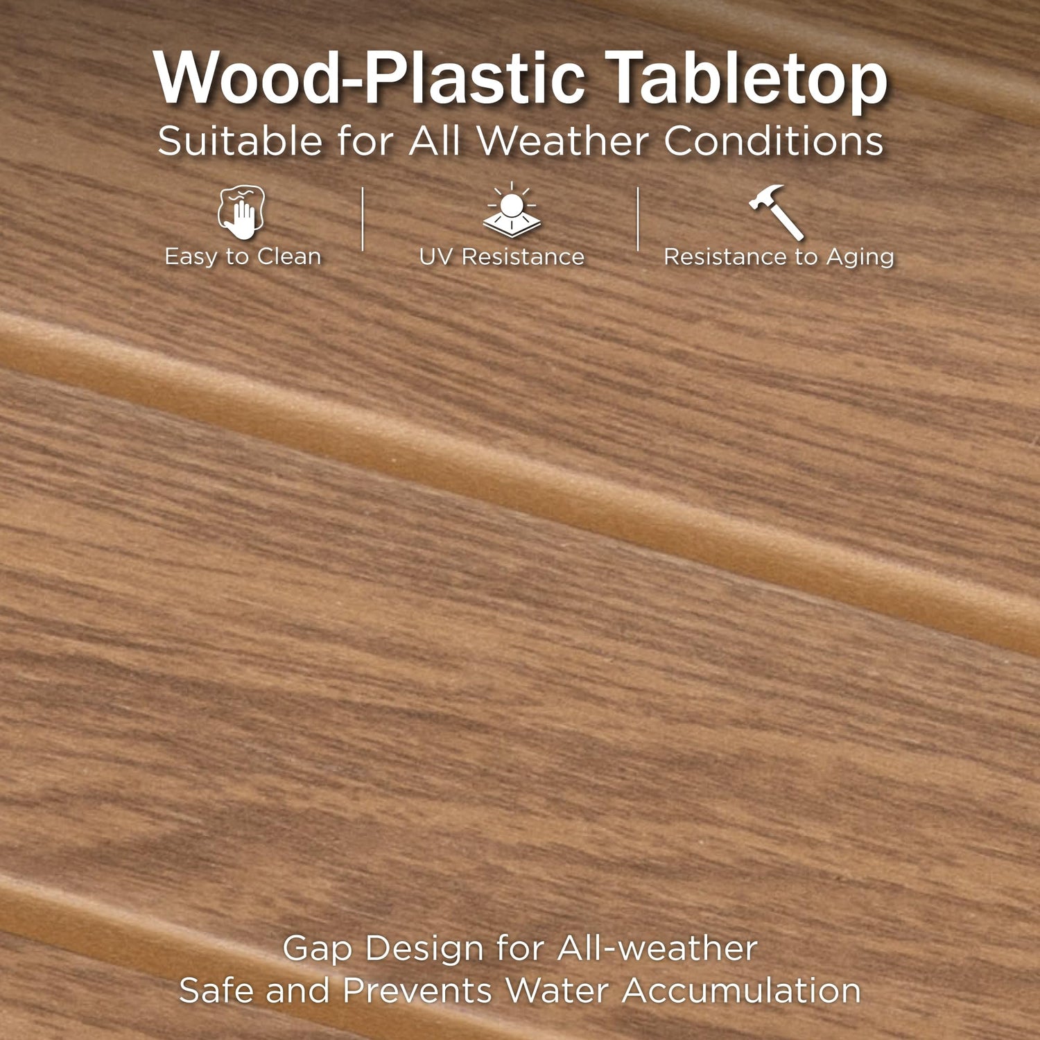 - 【Double-Layer Storage Tabletop】The matching coffee table features a 15mm thick polymer wood top that’s UV-resistant, waterproof, and easy to clean. Its dual-shelf design provides space for snacks, drinks, or books on top, and convenient storage below for accessories and outdoor essentials