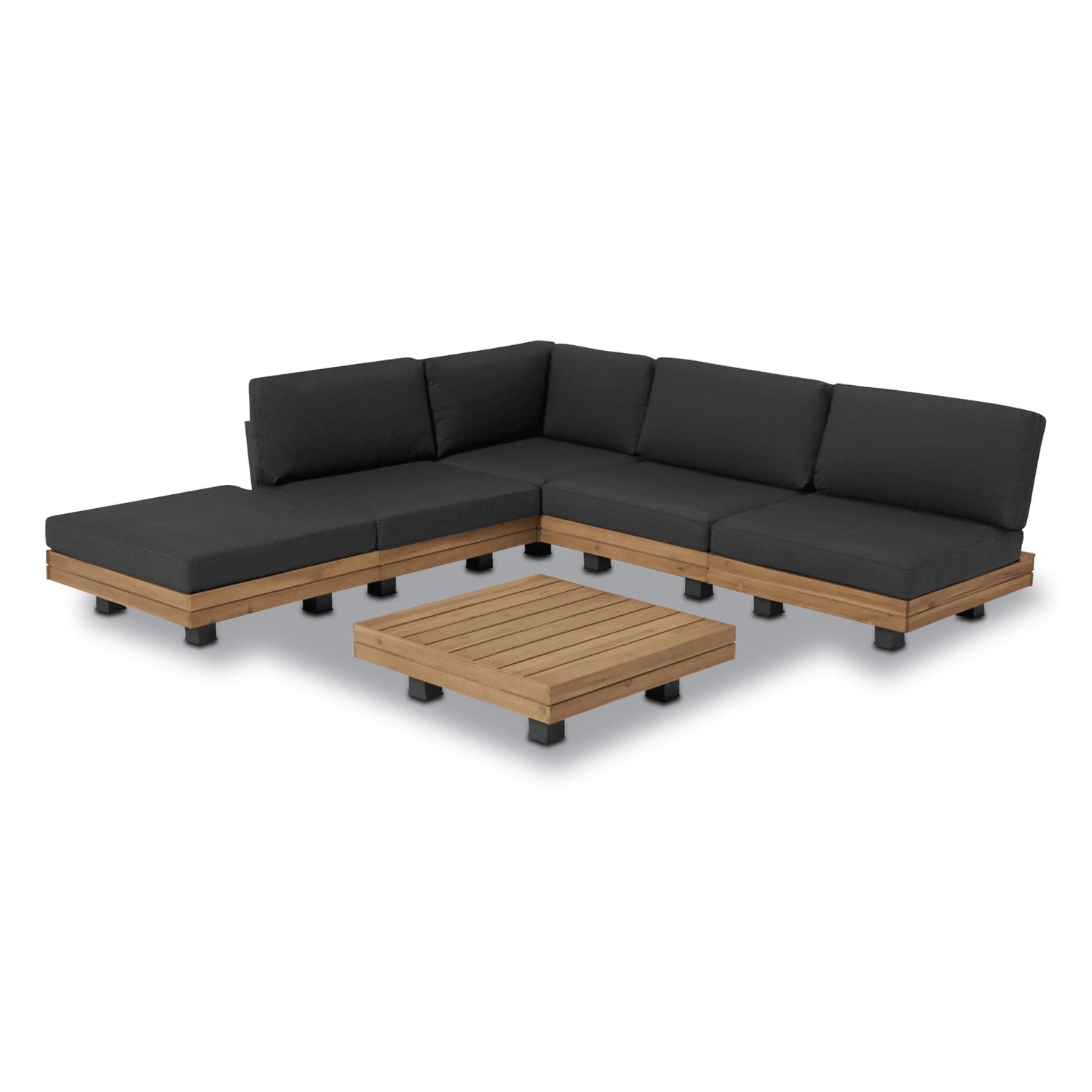 POLY & BARK Celenza Modular Corner Sectional Set with Coffee Table–Outdoor Sectional in Acacia Wood and Powder‑Coated Steel with Weather‑Resistant Cushions–Stylish Patio Lounge for Family and Guests