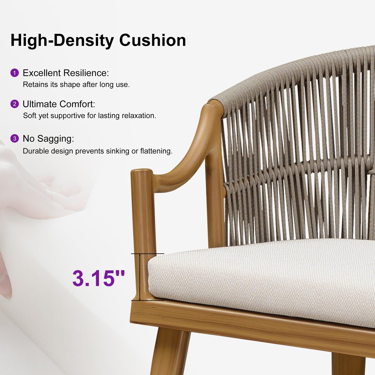 - 45D High-Density Sponge: The cushions of this all-weather dining set are made from 45D high-density foam, offering exceptional resilience and perfect support for outdoor seating comfort, even after hours of use.