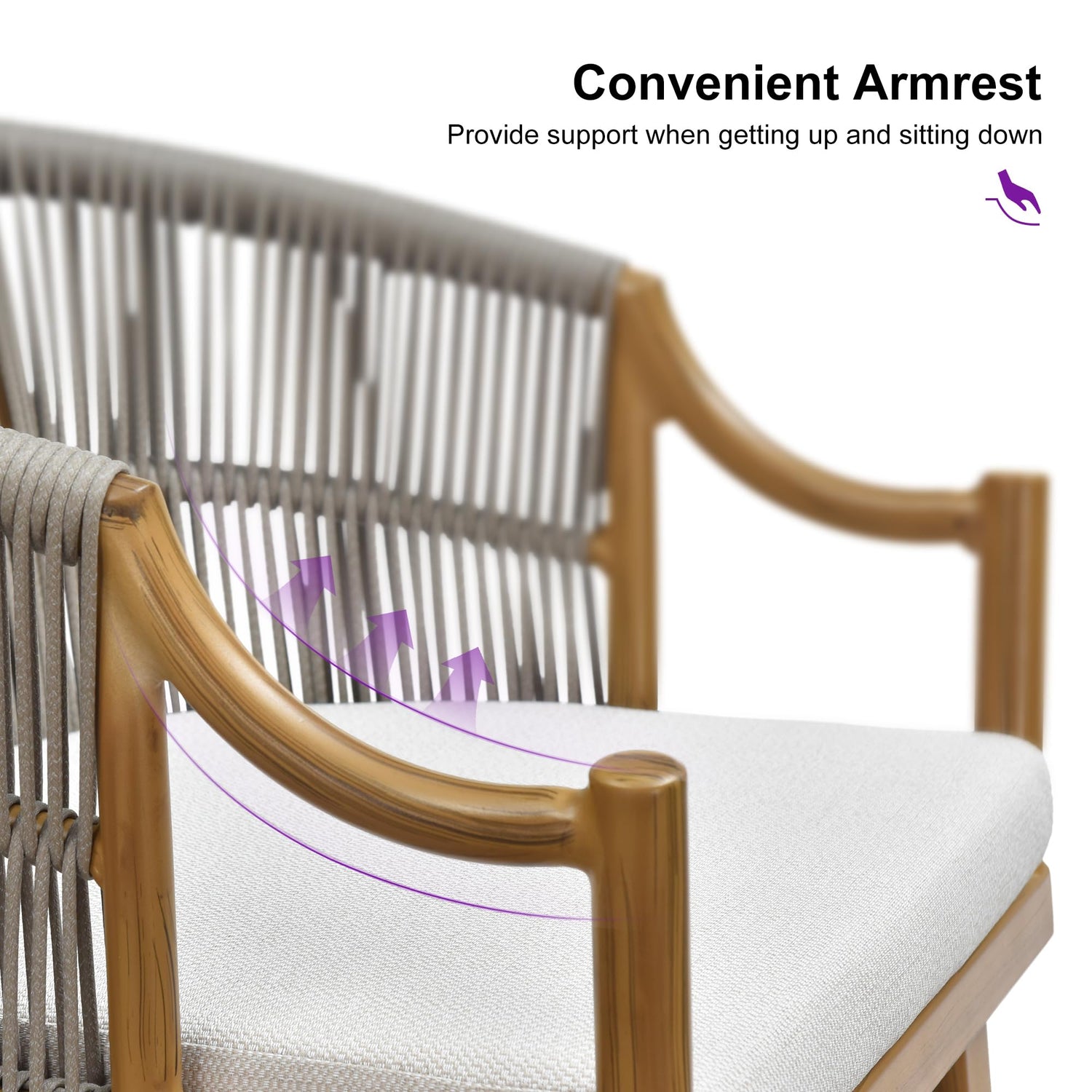 - Grippable Armrests: Designed with grippable armrests, this patio dining set offers extra support for getting up and sitting down, ensuring stability and comfort for seniors and guests during outdoor meals.