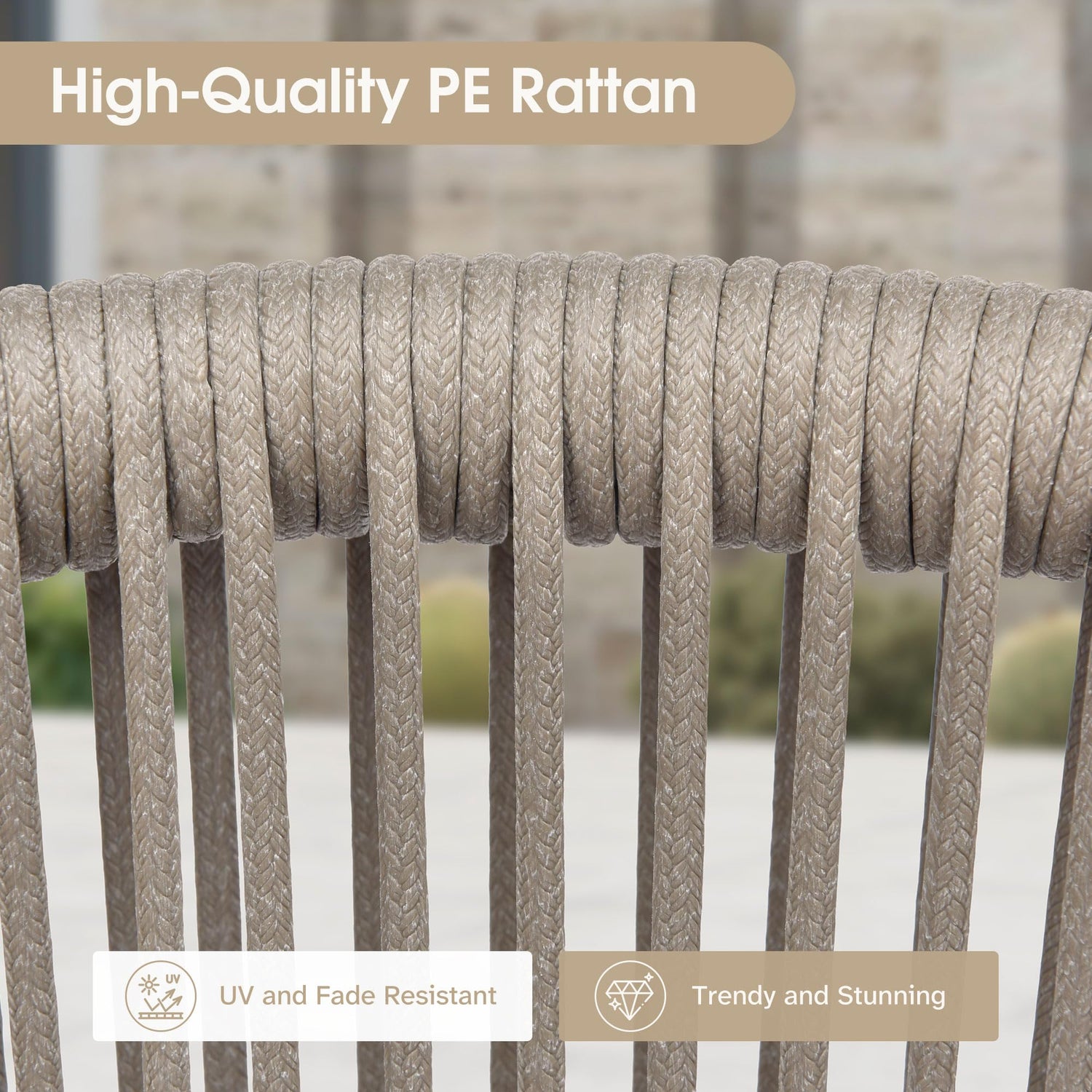 - Unique style: Chair backrest is decorated with parallel weaving rattan rope, which is more durable and resistant to low/high temperature, not easy to break and has a longer service life than traditional rattan.
