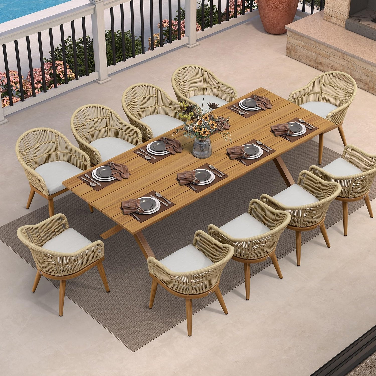 PURPLE LEAF 11 Pieces Patio Dining Set with Outdoor Aluminium Dining Table and Woven Chairs Modern Metal Furniture Cushions Sets for Garden Yard Indoor Decor Kitchen Teak