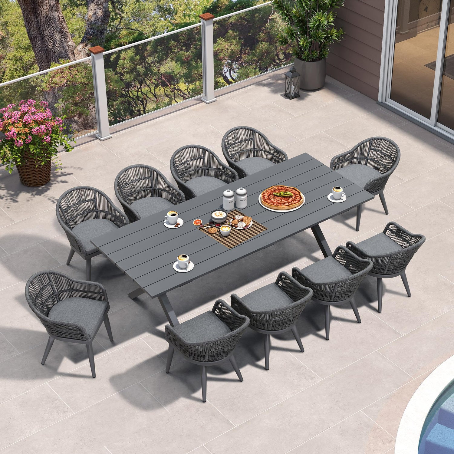 PURPLE LEAF 11 Pieces Patio Dining Set with Outdoor Aluminium Dining Table and Woven Rattan Chairs Modern Metal Furniture Cushions Sets for Garden Yard Indoor Decor Kitchen Grey